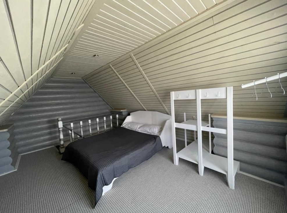 На втором этаже расположена большая кровать, на первом этаже -раскладной диван. Детская кроватка по запросу. В домике есть все необходимое: ТВ, СВЧ, кондиционер, холодильник, электрический чайник, индукционная плита, посуда для приготовления. На первом этаже расположена туалетная комната с душем. Рядом с домиком своя мангальная зона. В стоимость входит уголь, розжиг (по запросу).