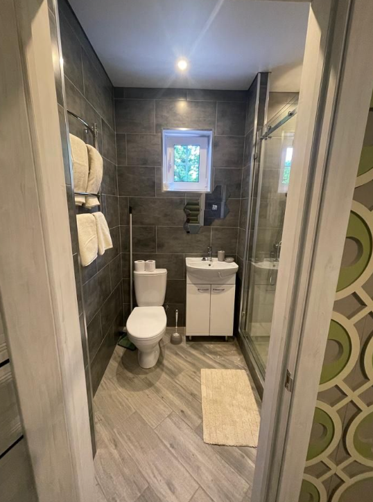 В доме всего 6 спален. На первом этаже расположены три спальни и раскладной диван, туалетная комната с душем. На втором этаже тоже три спальни и свой санузел. Рядом с домом своя мангальная зона. В стоимость входит уголь, розжиг (по запросу).