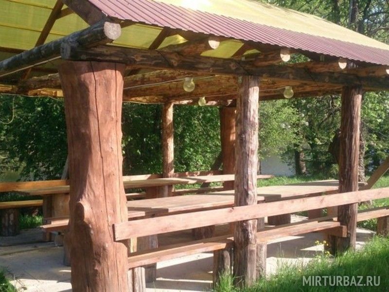 Палаточный городок с беседками и кухней.