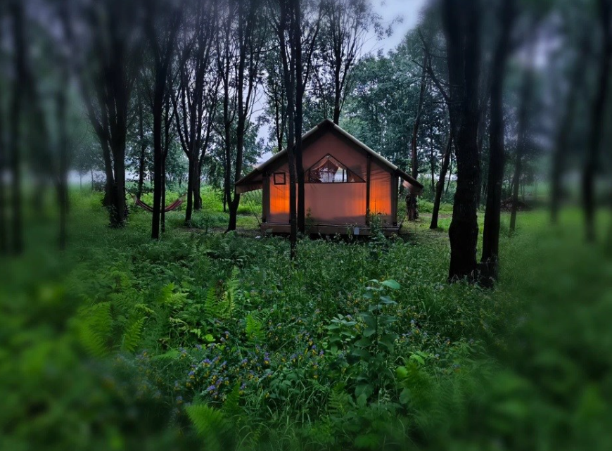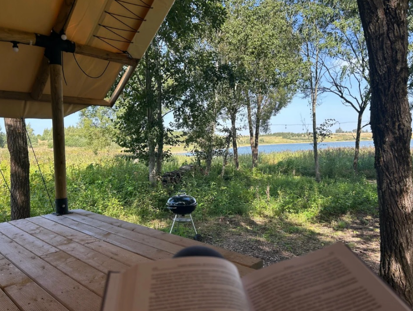 Лежать в шезлонге и смотреть на облака. Уйти в лес с книгой и забыть про время. Париться в бане, а потом нырять в прохладную Вазузу. Жечь костёр и молчать, глядя на искры. Завтракать, когда проснёшься, а не по расписанию. Это и есть природотерапия. Самый честный способ перезагрузить голову. Спать до рассвета в тёплых сафари-тентах или просторных семейных модулях. Утром пить кофе на террасе, а вечером греться в бане у воды. Если хочется движения — можно взять сап, лодку или велосипед. Но главное, что есть — это тишина и пространство. Никаких соседей за стенкой. Никакого шума магистрали.