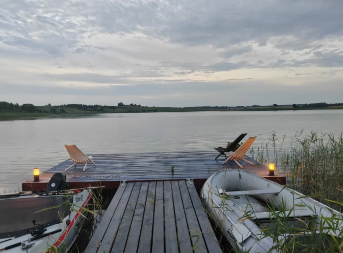 - для трофея (опытный рыбак): на быстроходной лодке, по секретным точкам на карте (в 500 метрах от глэмпинга есть залив) и за щукой, окунем или сомом. Если нужен гид — будет гид. Если нужен азарт — он будет.
