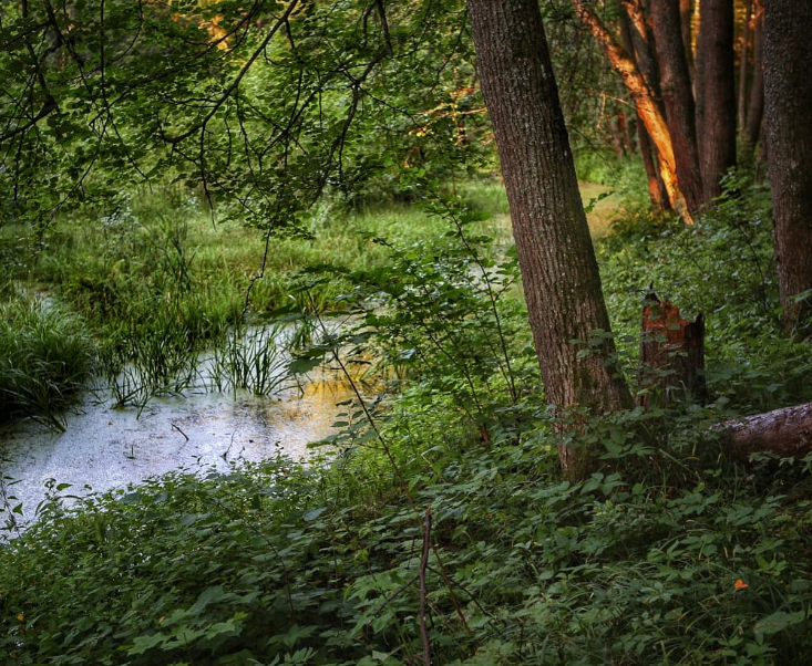 На территории глэмпинга есть замечательный парк, где можно погулять среди деревьев и диких животных, посидеть в тени и послушать журчание ручья. Эко-тропа — это километр дикой природы в пяти минутах от тента. Она петляет вдоль ручья, где живут бобры, уходит вглубь леса, где можно встретить следы лося или оленя, и приводит к укромным скамейкам с видом на воду. Это не просто прогулка, это природотерапия шагами.