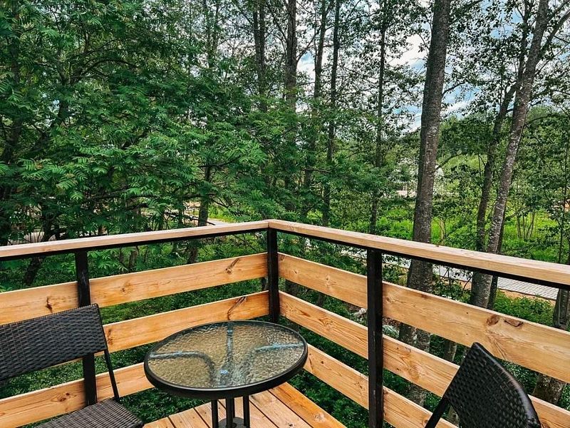 - Уникальный двухуровневый домик в лесу с двумя террасами, оторванный от земли на высоту крон деревьев;