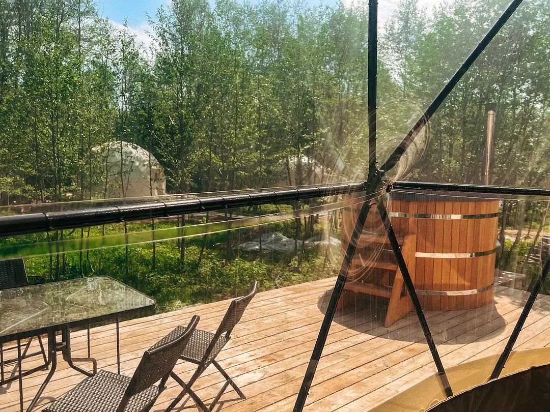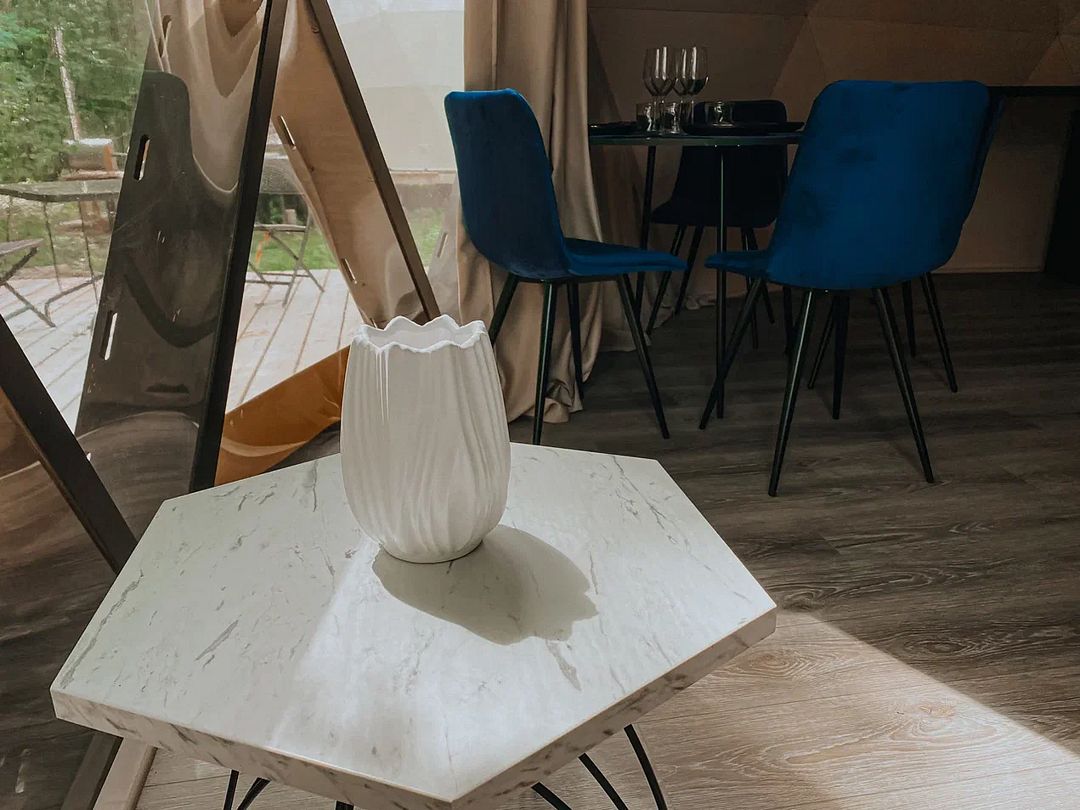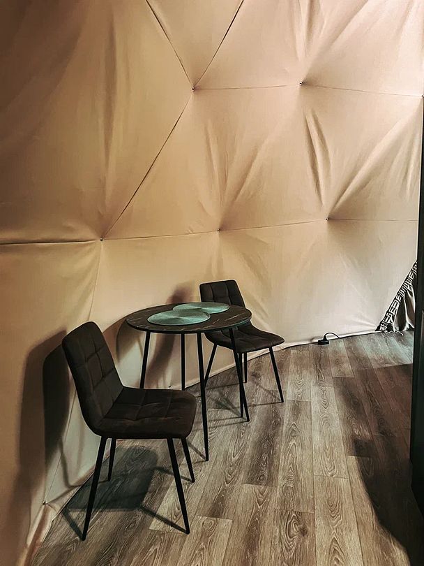 Геокупол Сьют «Пряный Марракеш» — это один из семи видов наших уникальных купольных домов. Дом имеет просторную комнату с огромной кроватью напротив панорамного окна и очень необычный мезонин на втором этаже.