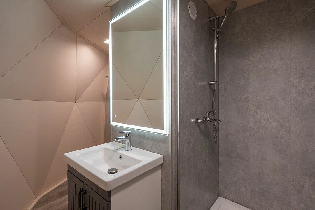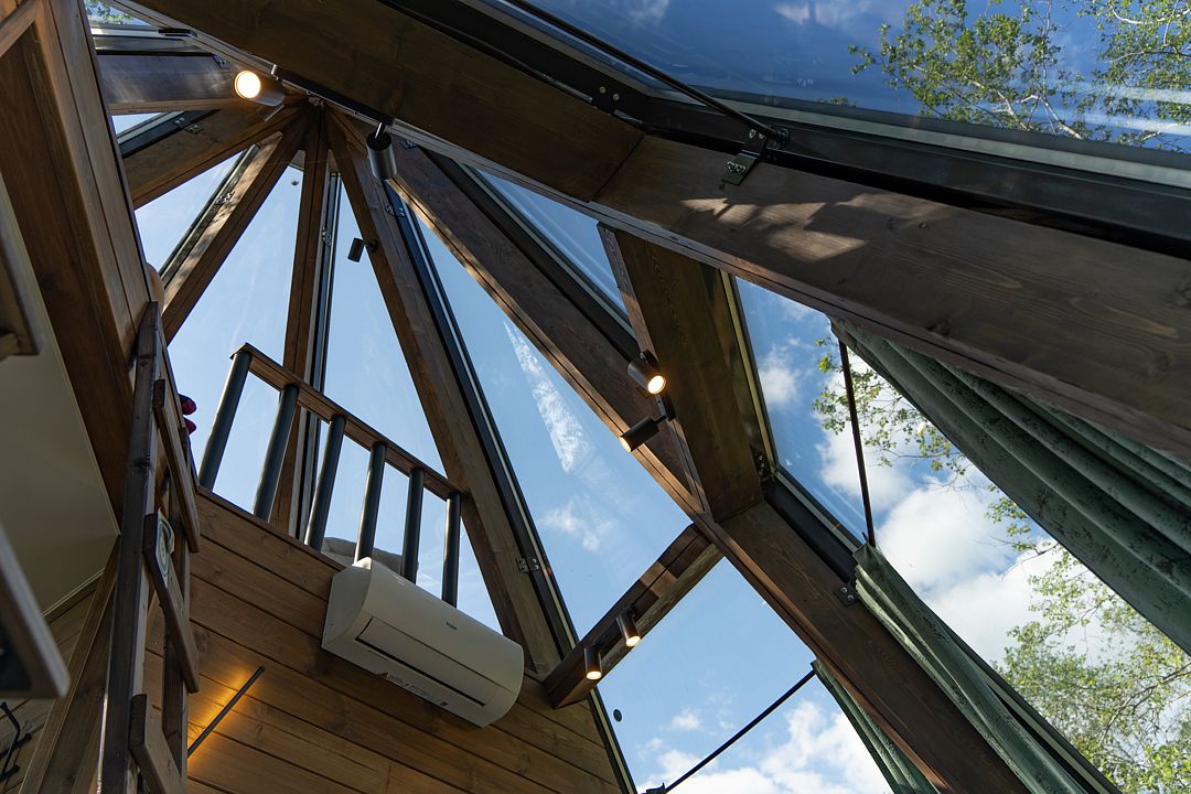 Геокупол Сьют «Лазурный берег» — это один из семи видов наших уникальных купольных домов. Дом имеет просторную комнату с огромной кроватью напротив панорамного окна и очень необычный мезонин на втором этаже.