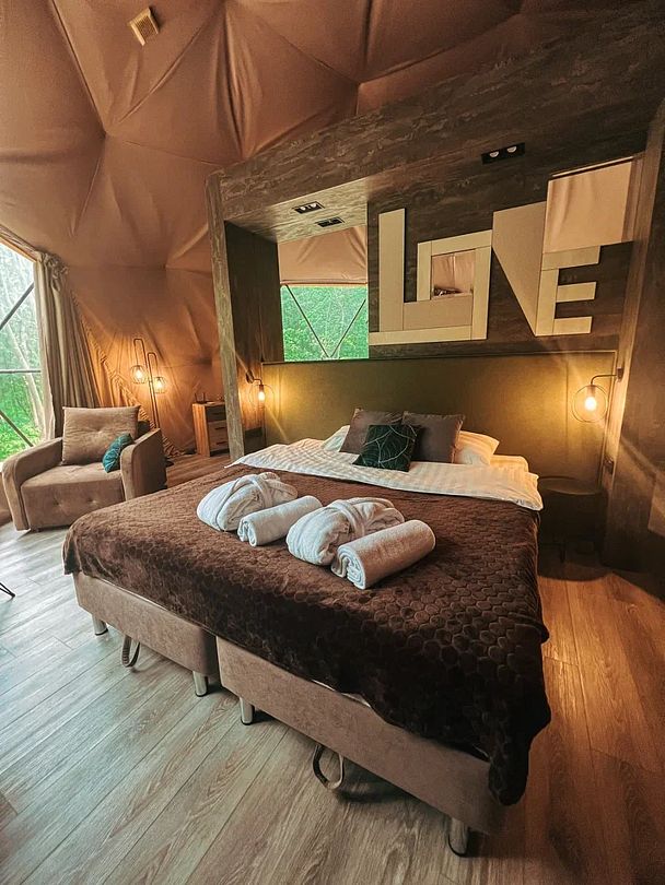 Глэмпинг «Vazuza Love» предлагает уникальное сочетание комфорта глэмпинга и разнообразных возможностей, предоставляемых большим курортом.