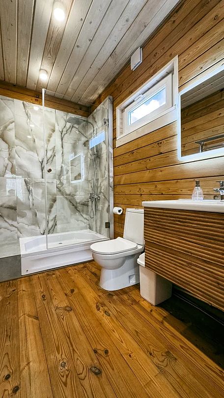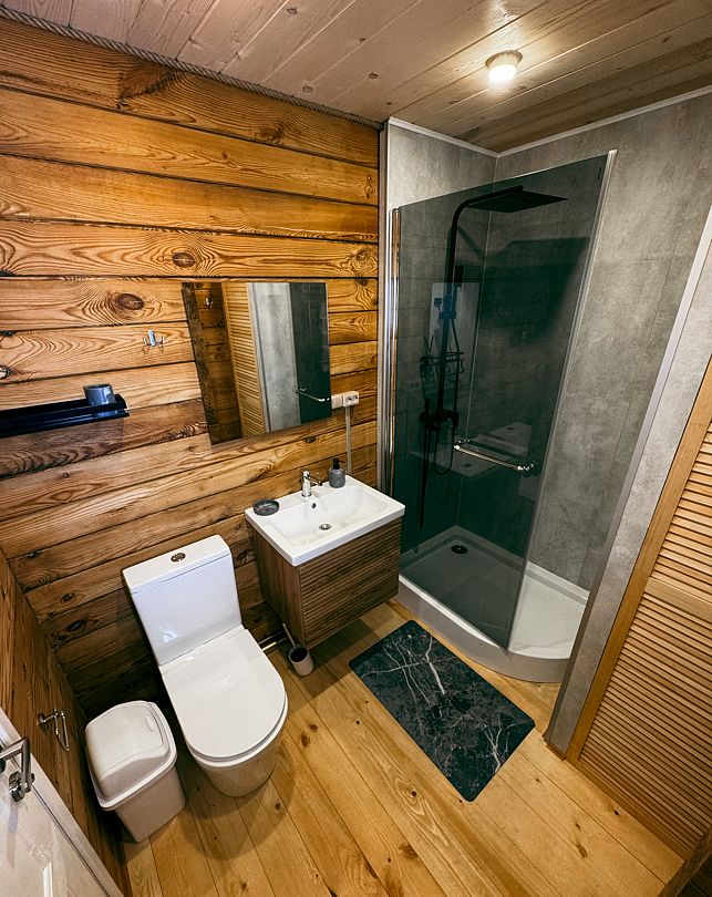 - Баня (2,5 часа) – 6 500 ₽ / до 4 гостей Настоящее тепло и аромат дерева — для полной перезагрузки.