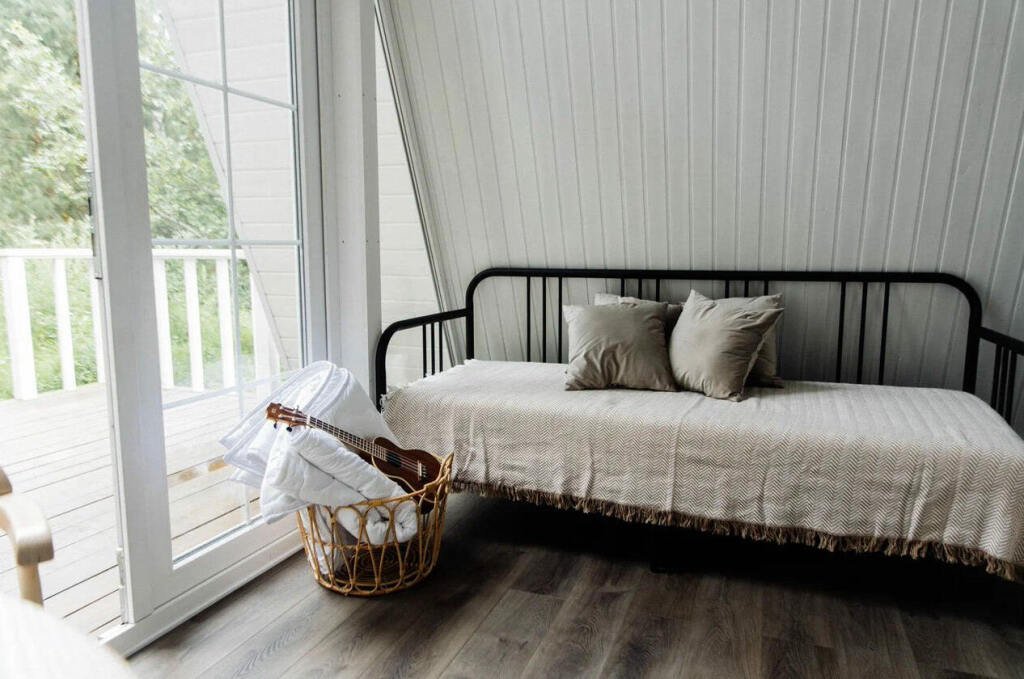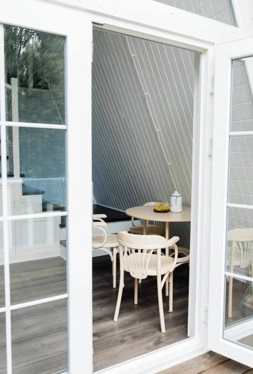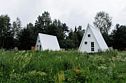 Домики расположены на лужайке. Каждый вмещает до 4-х человек. Интерьер внутри простой, деревенский и включает в себя все необходимое для комфортного отдыха: двуспальную кровать на мансарде, раскладной диван, мини-кухня, санузел.