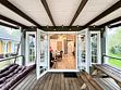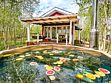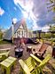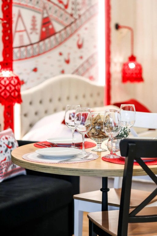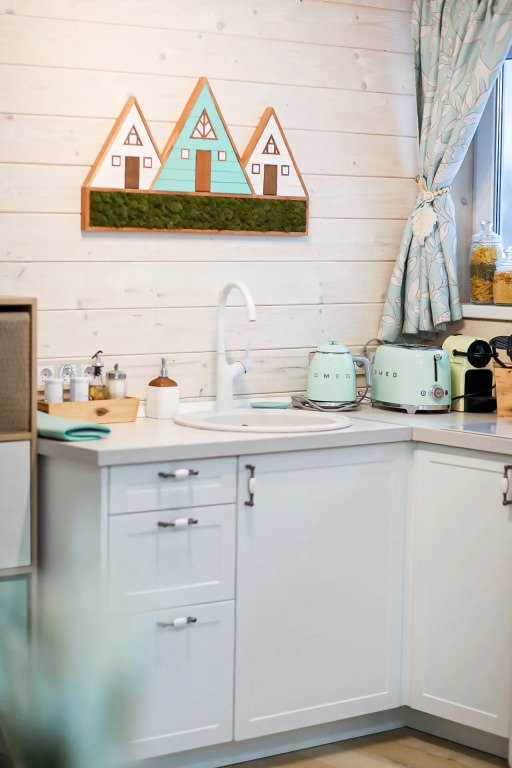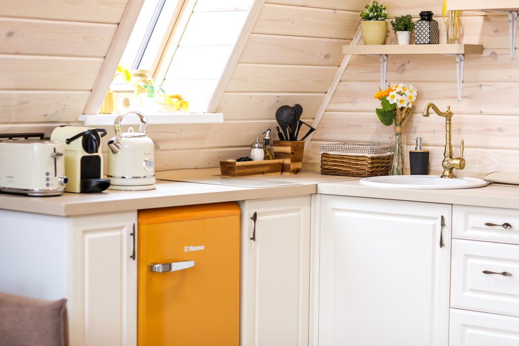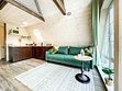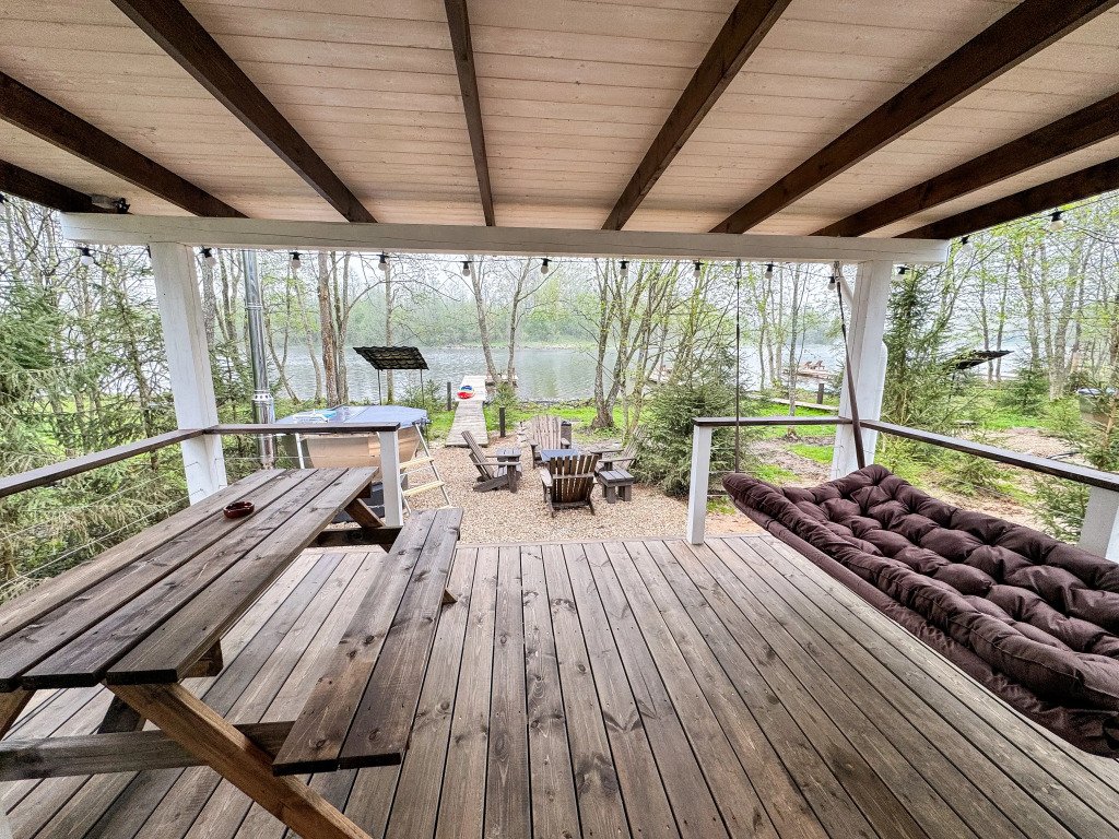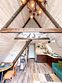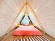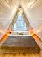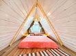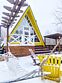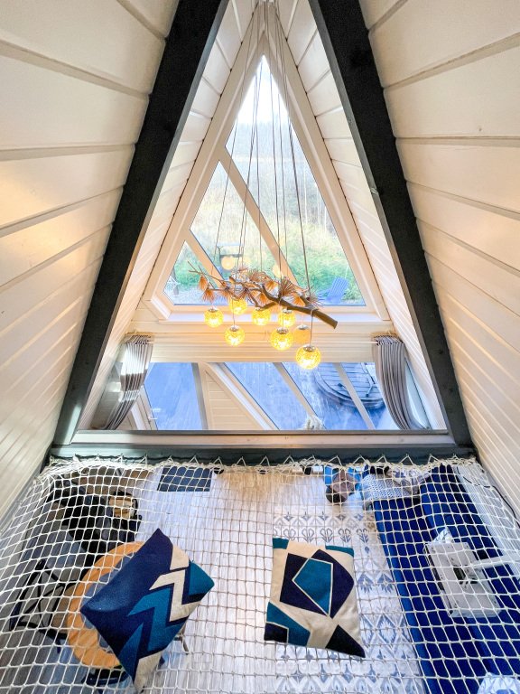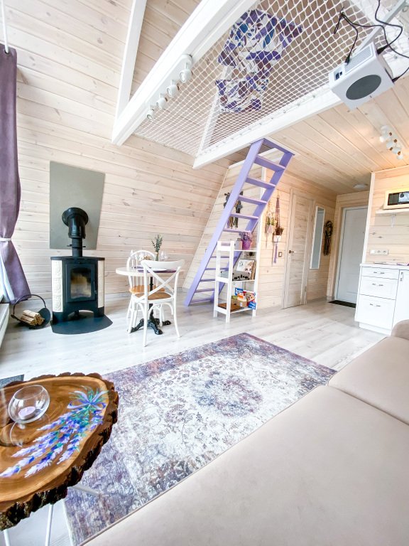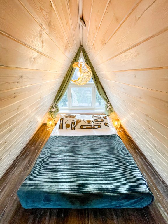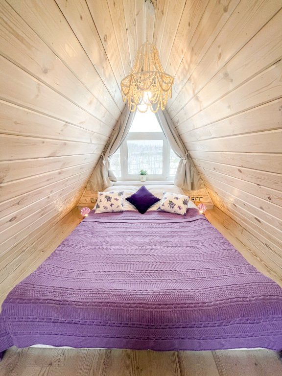 На территории в 1,5 гектара расположился уникальный комплекс для отдыха круглый год: 9 треугольных А-фрейм домов и 4 современных этнодомика в русском стиле, стоящие прямо у воды. Каждый дом отличается цветом и уникальным интерьером.