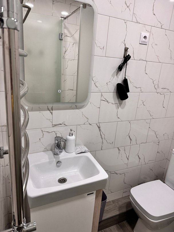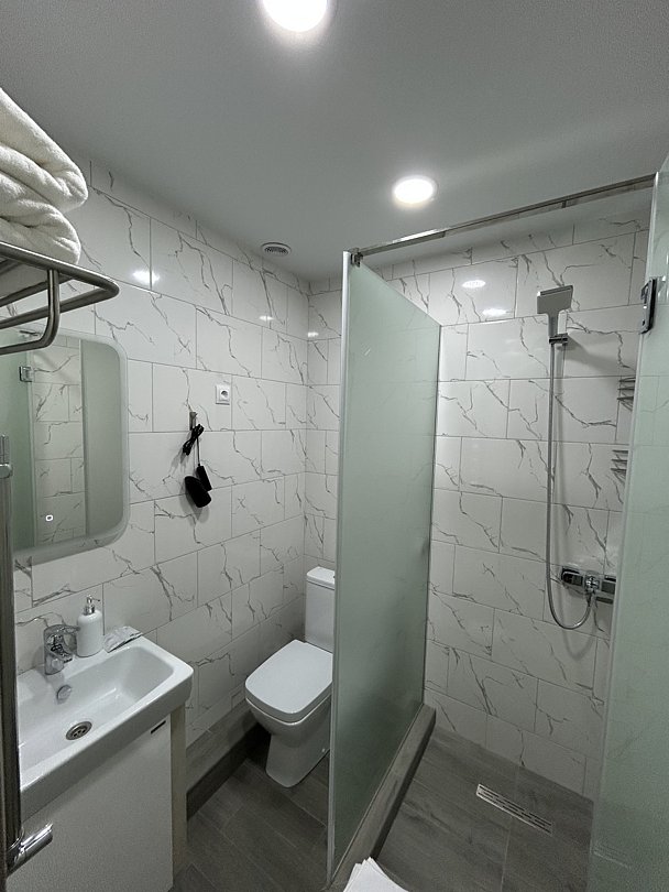 - душевая кабина, шкаф, фен;