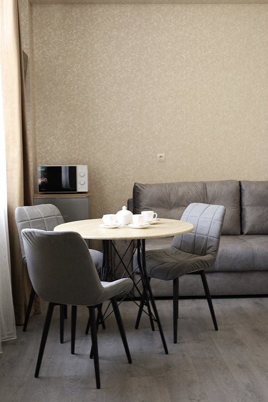Просторный однокомнатный номер площадью 25 м² подойдёт для комфортного отдыха вдвоем.