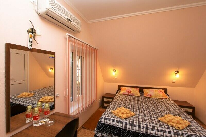 Туалет, душ(холодая, горячая вода), двуспальная кровать, диван, ТV, небольшой холодильник, кондиционер/отопление, постельное белье, для каждого гостя банное, лицевое полотенца.