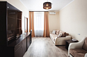 Двухкомнатный номер с современным дизайном, состоящий из спальни и гостиной. Оснащён всем необходимым оборудованием для комфортного пребывания. В номере кровати системы трансформер.