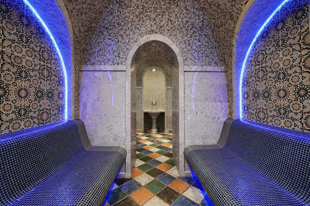 Мы с удовольствием посещали бассейн и хамам, который до 12 часов дня для гостей отеля работает бесплатно. Предоставляются полотенца, халаты, тапочки, одноразовые шапочки и питьевая вода. Бассейн небольшой, но красивый, с теплой водой и гидромассажем.