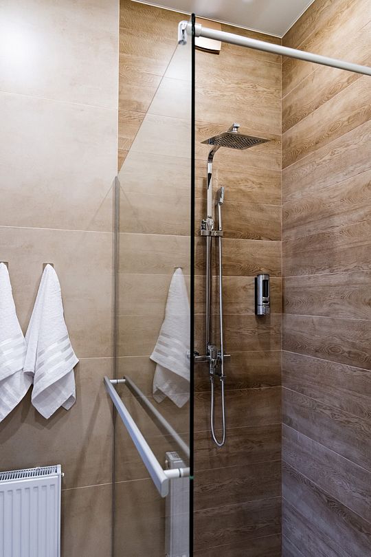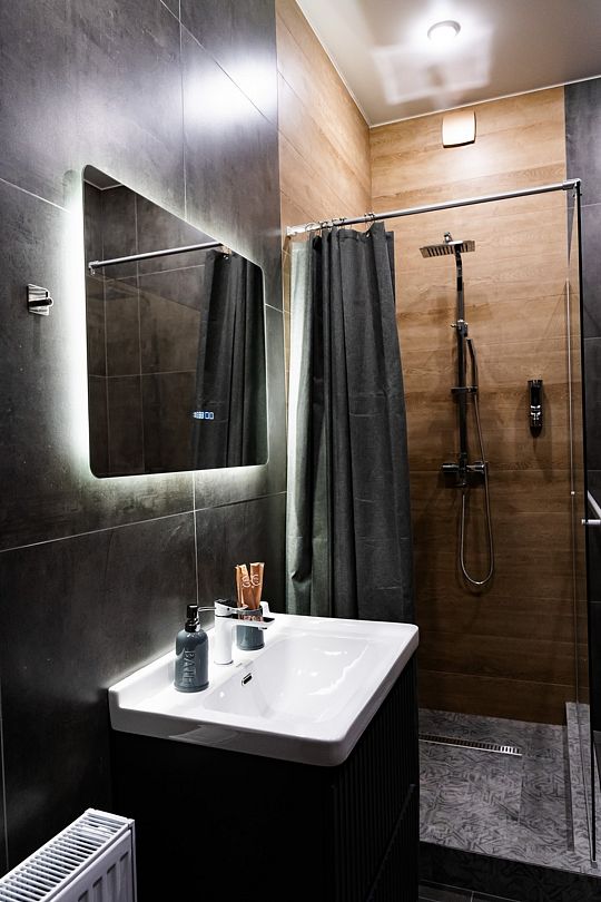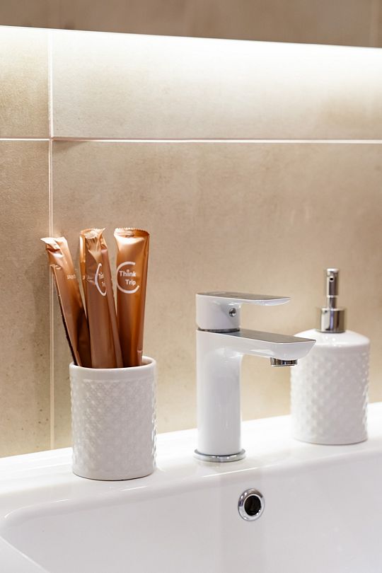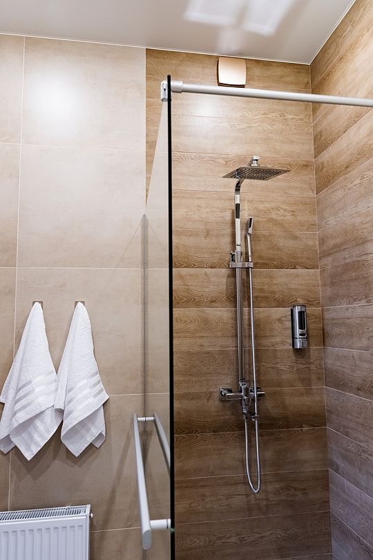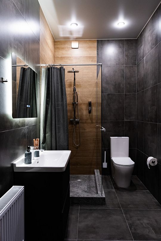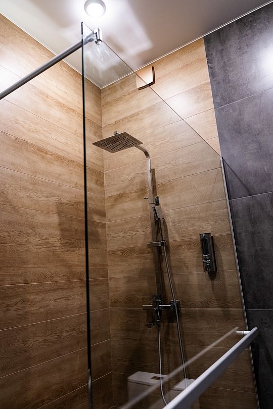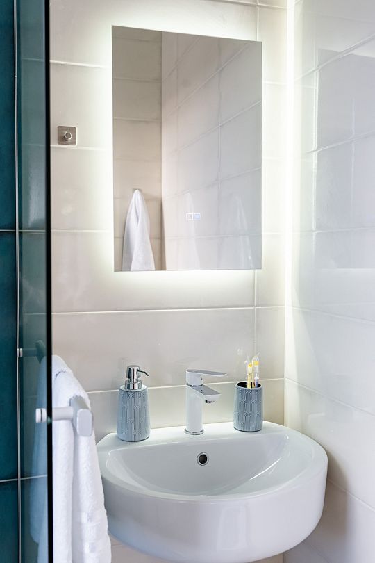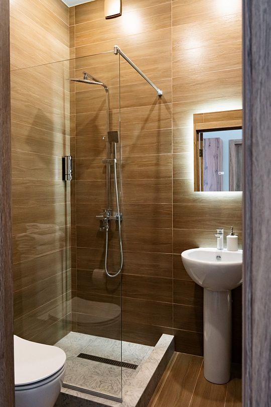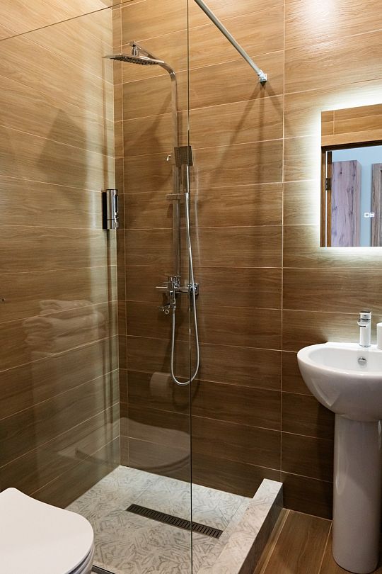 Индивидуальные ванные комнаты оборудованы душем, раковиной и туалетом.