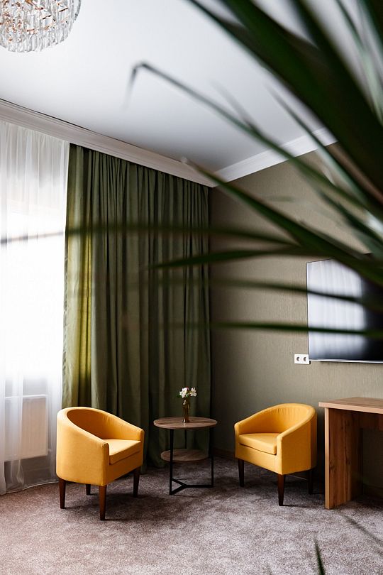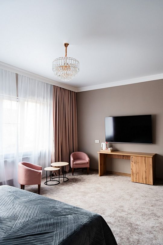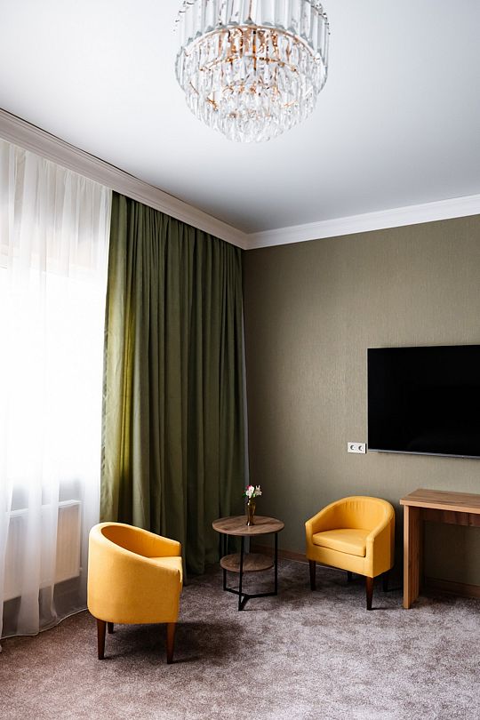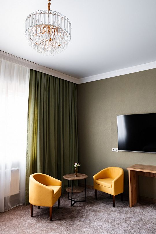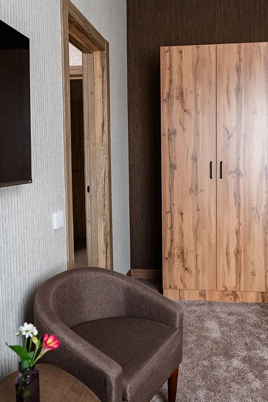 Люкс площадью 23 кв.м с видом на горы. Подходит для размещения 2 человек. Номер с приятным интерьером.