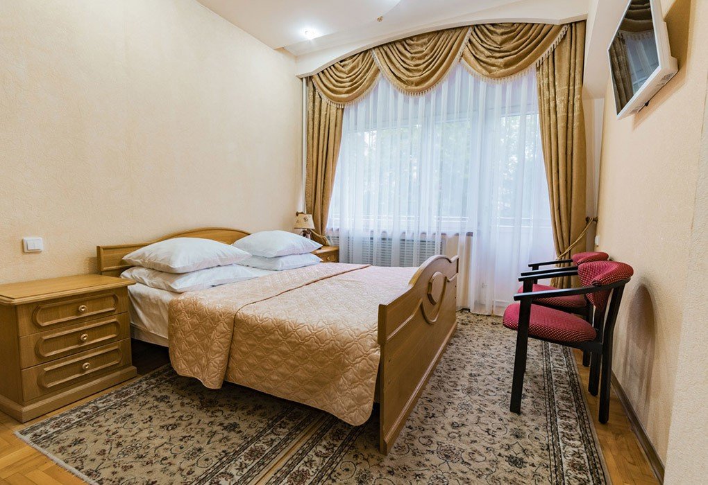 Особенности номера: продуманная обстановка, удобная мебель, бесплатный Wi-Fi в холлах спальных корпусов и приемном отделении, в номере есть балкон.