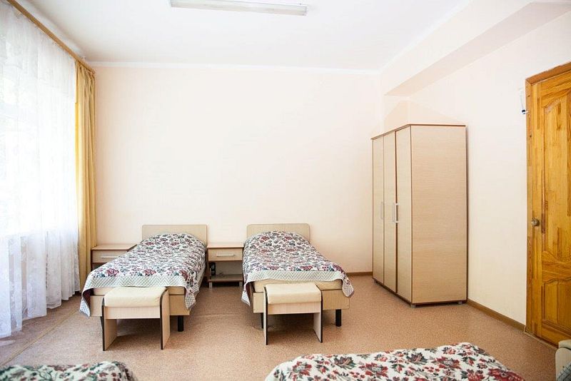 Стандартный трех-пятиместный номер с удобствами на этаже. Телевизор и холодильник на этаже.