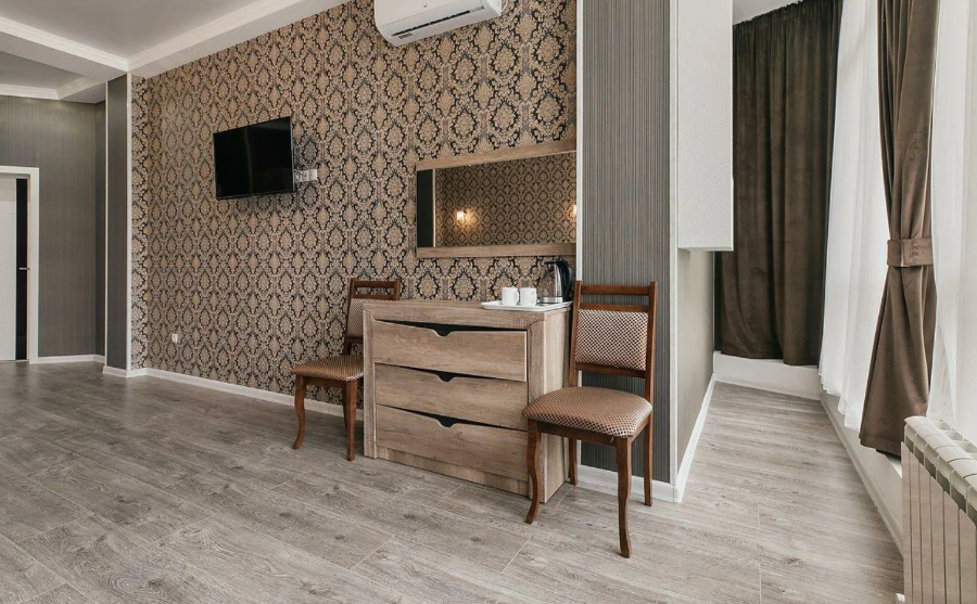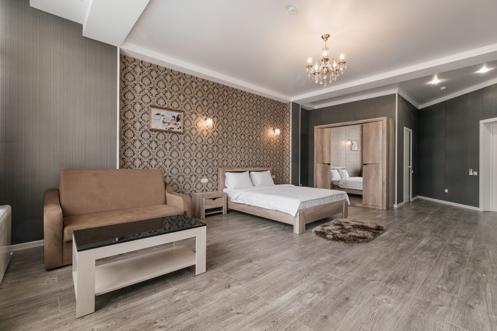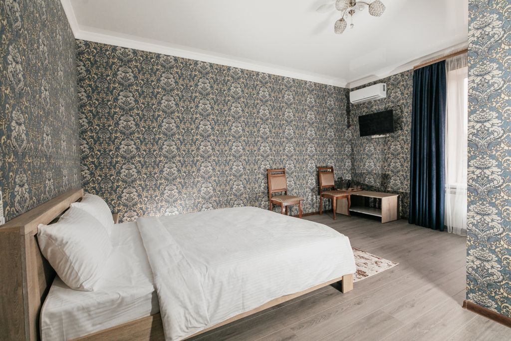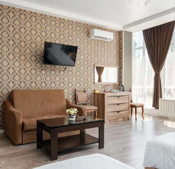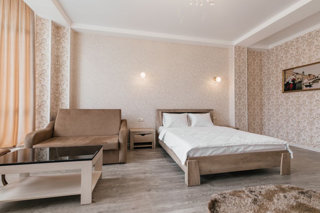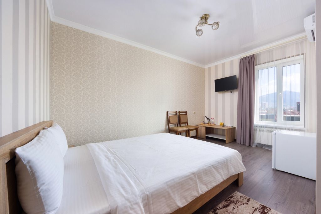 Отдыхающие смогут разместиться с комфортом в различных категориях номеров. В отеле 17 просторных и комфортабельных номеров, которые гарантируют незабываемый отдых. Комнаты оформлены в светлых бежевых оттенках и комплектованы всем самым необходимым: кондиционером, ЖК-телевизором, полотенцами и средствами личной гигиены.