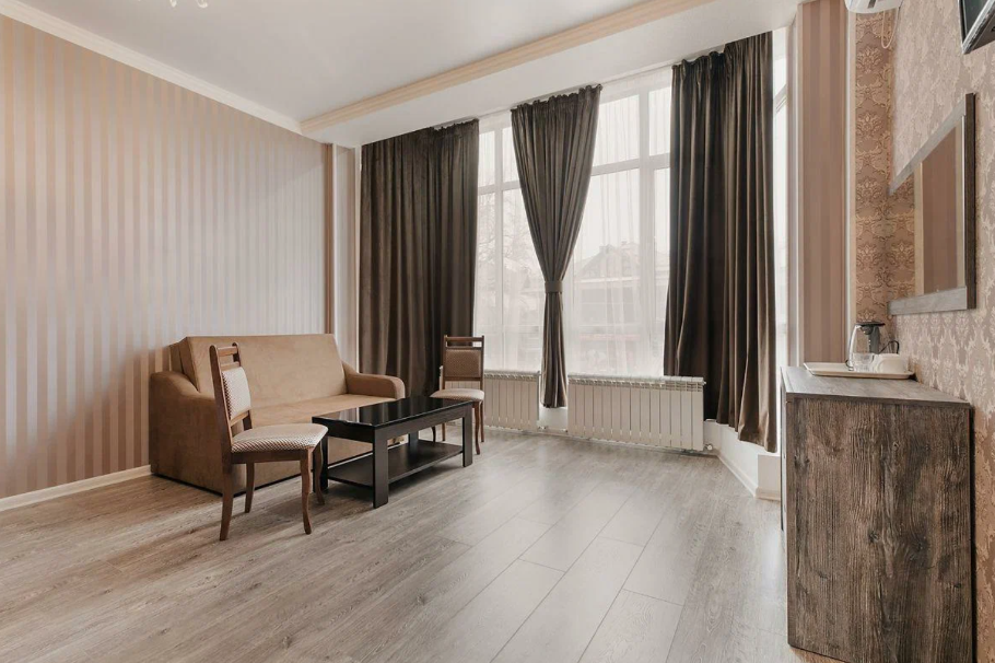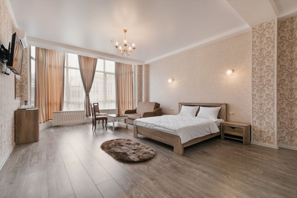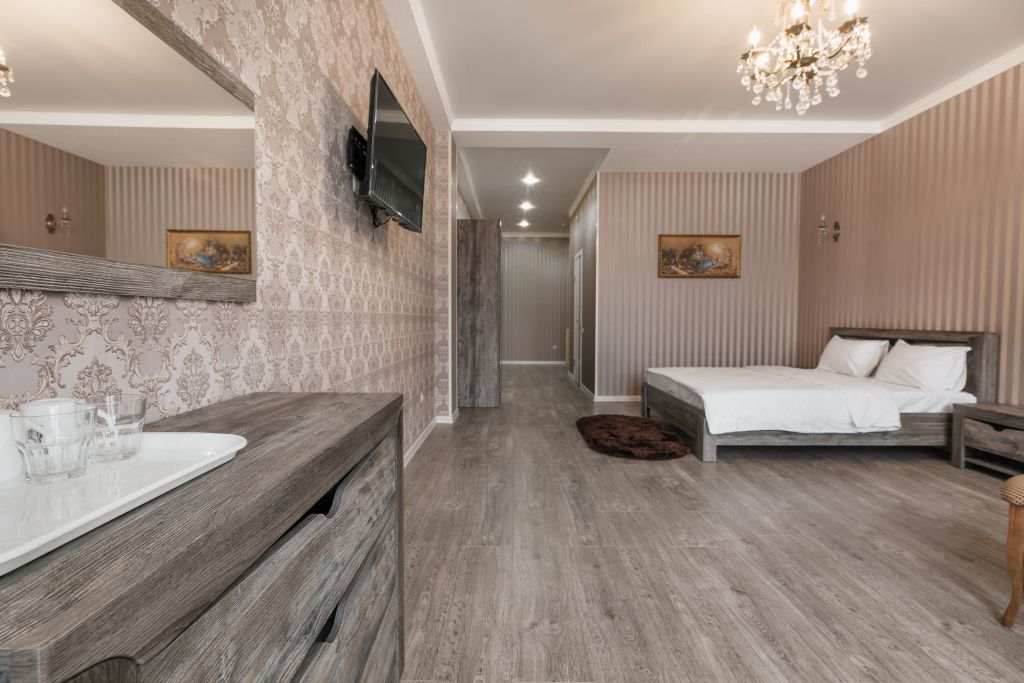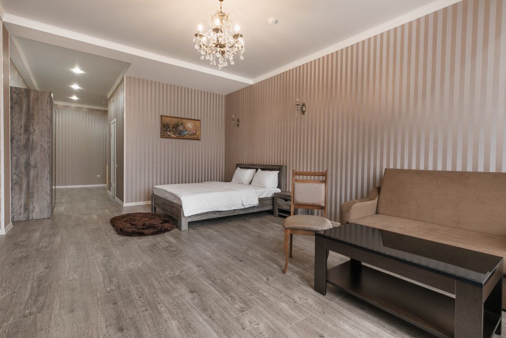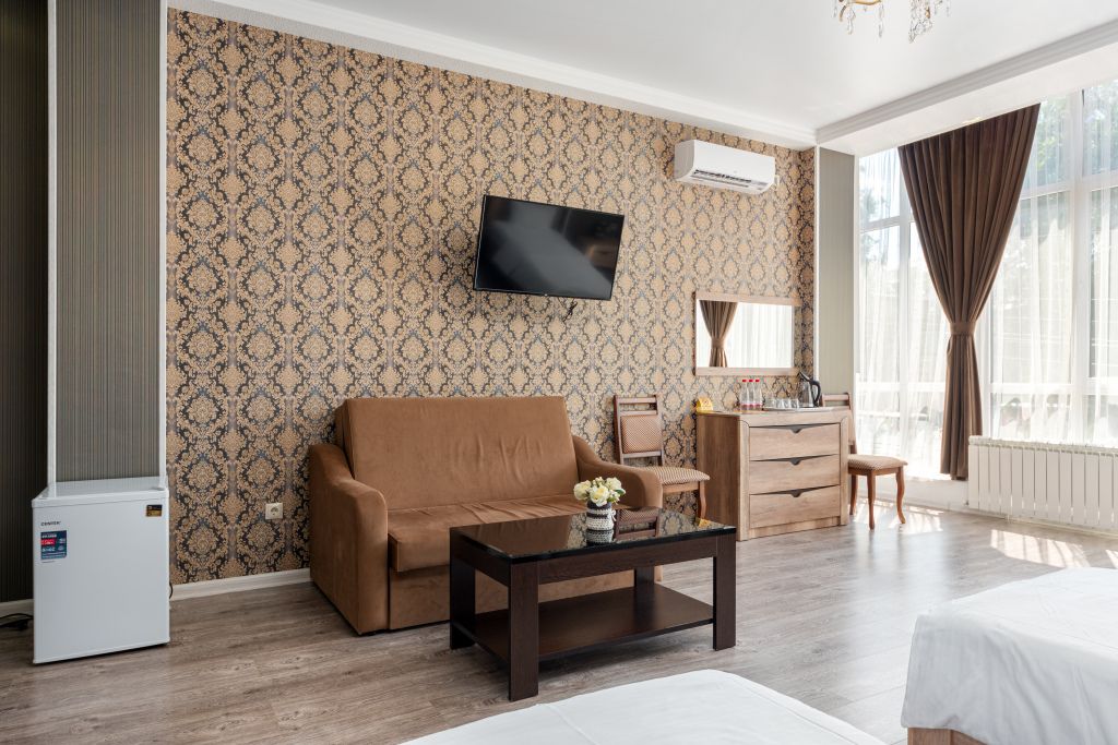 Отдыхающие смогут разместиться с комфортом в различных категориях номеров. В отеле 17 просторных и комфортабельных номеров, которые гарантируют незабываемый отдых. Комнаты оформлены в светлых бежевых оттенках и комплектованы всем самым необходимым: кондиционером, ЖК-телевизором, полотенцами и средствами личной гигиены.