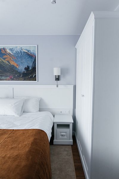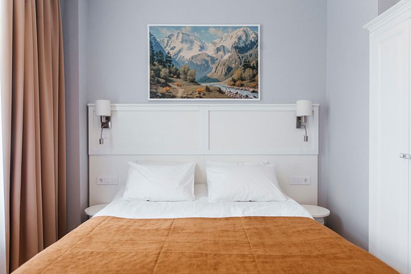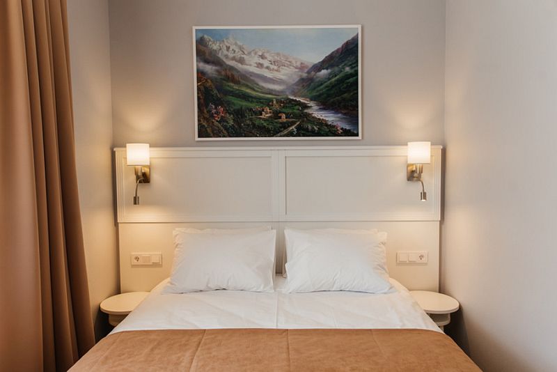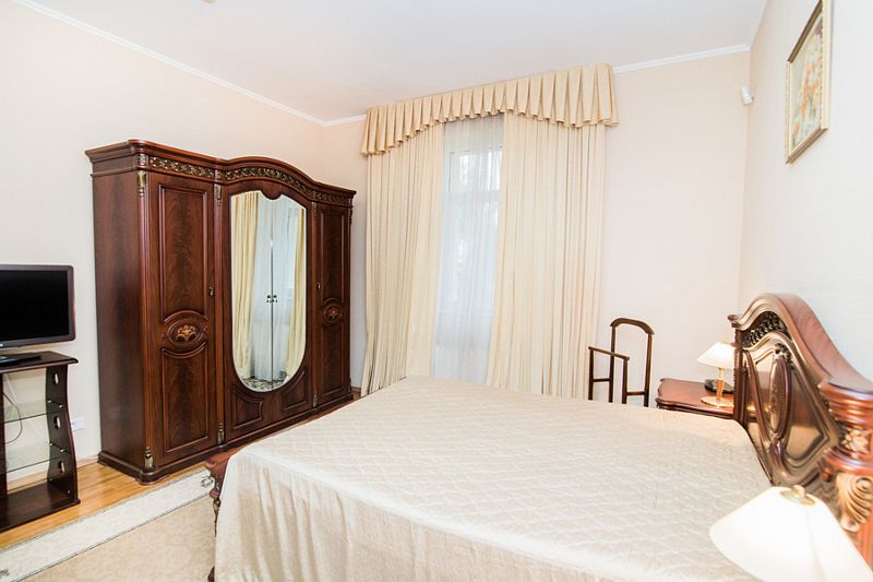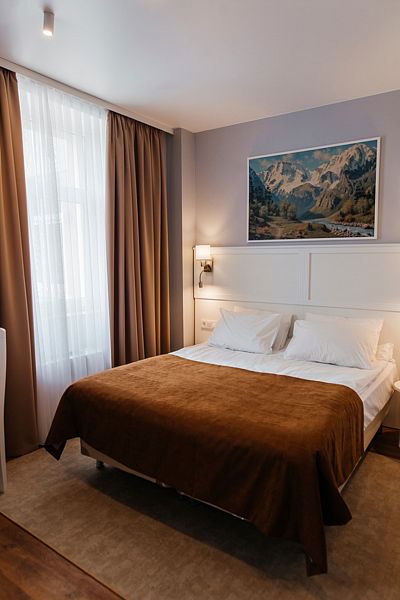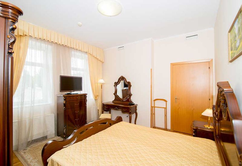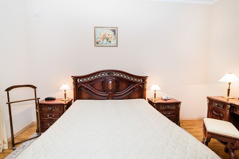 Номер состоит из спальни и собственной ванной комнаты, обставлен красивой удобной мебелью и предназначен для комфортного отдыха 2-3 человек.