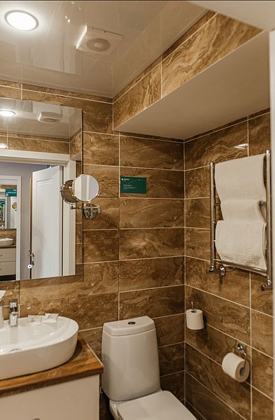 Номер состоит из спальни, обставленной стильной удобной мебелью, и с ванной комнаты c душевым ограждением и туалета. Номер находится в 6 корпусе.