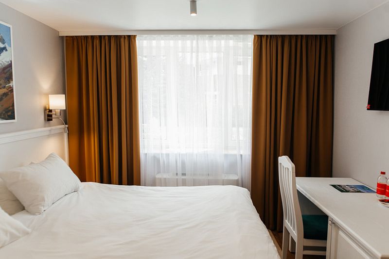 Просторный номер с одной двуспальной или двумя раздельными кроватями оформлен в приятных светлых тонах и рассчитан на комфортное размещение 2-3 гостей.
