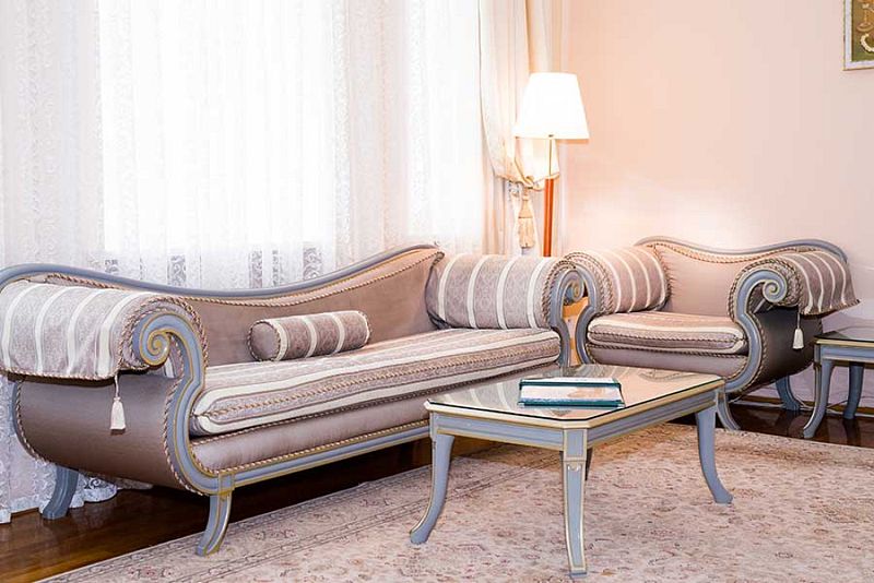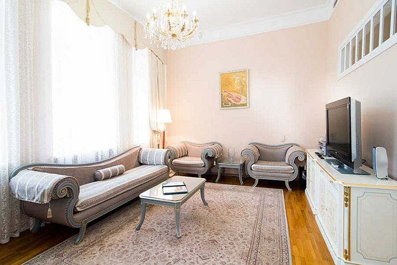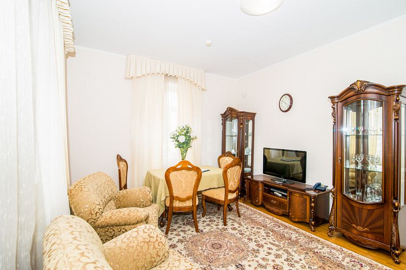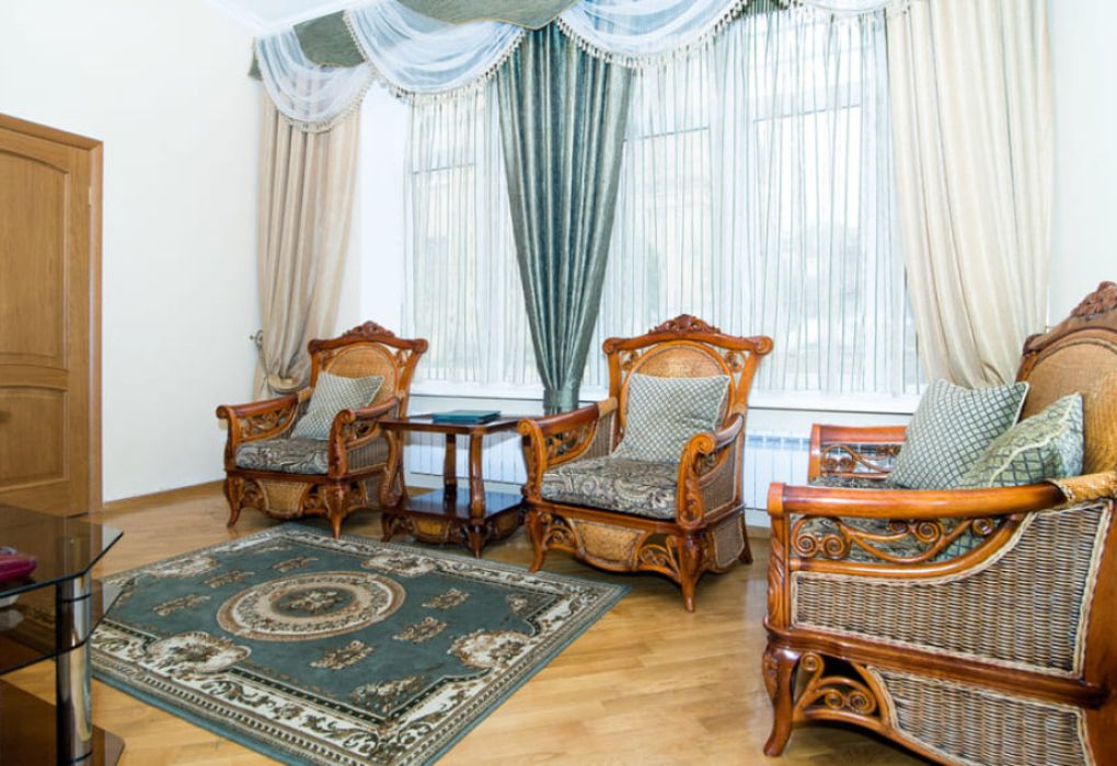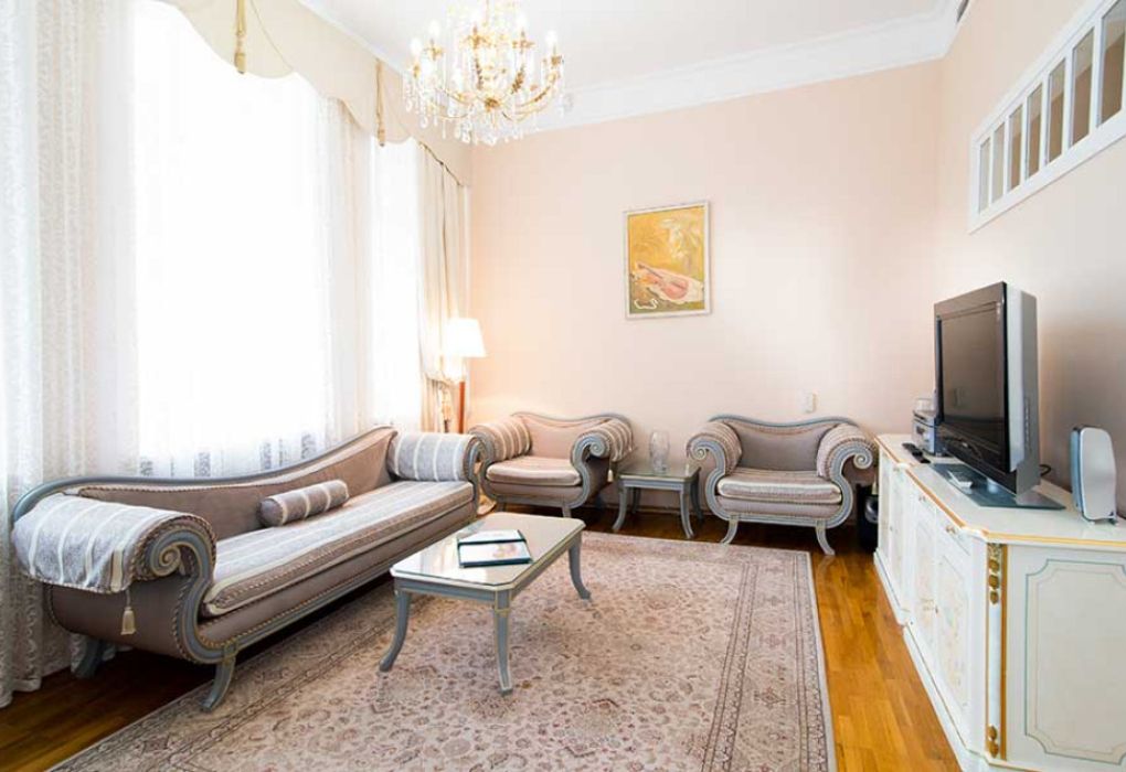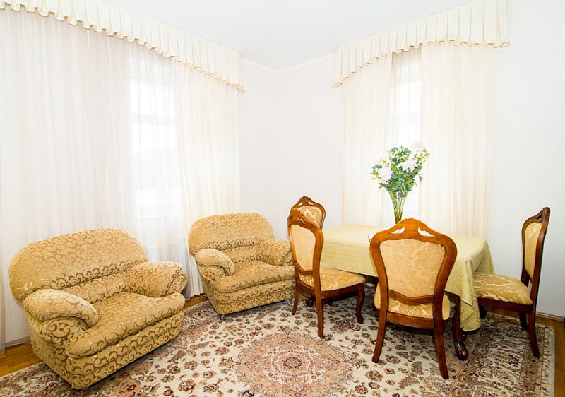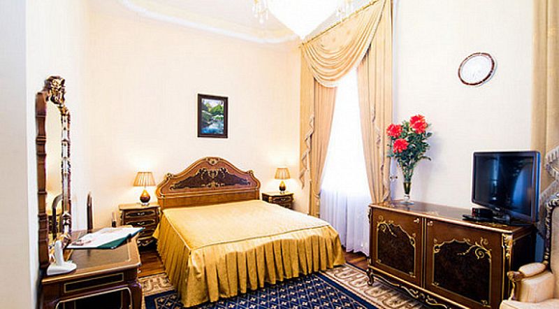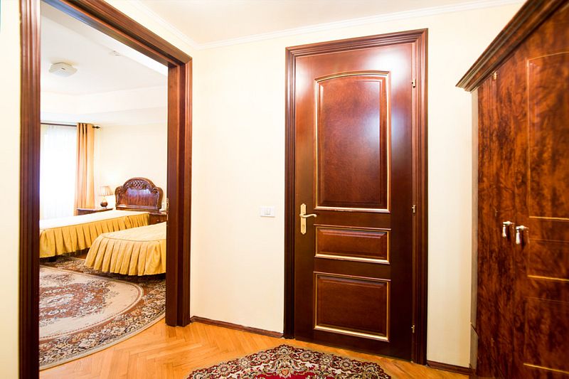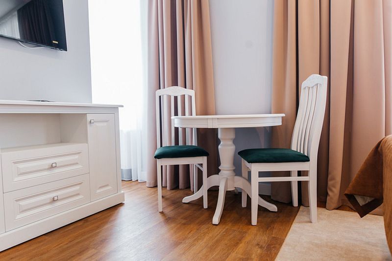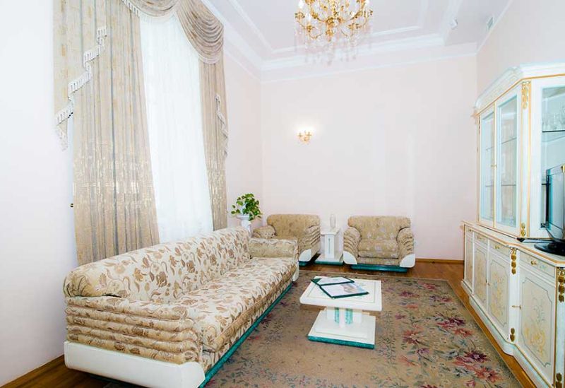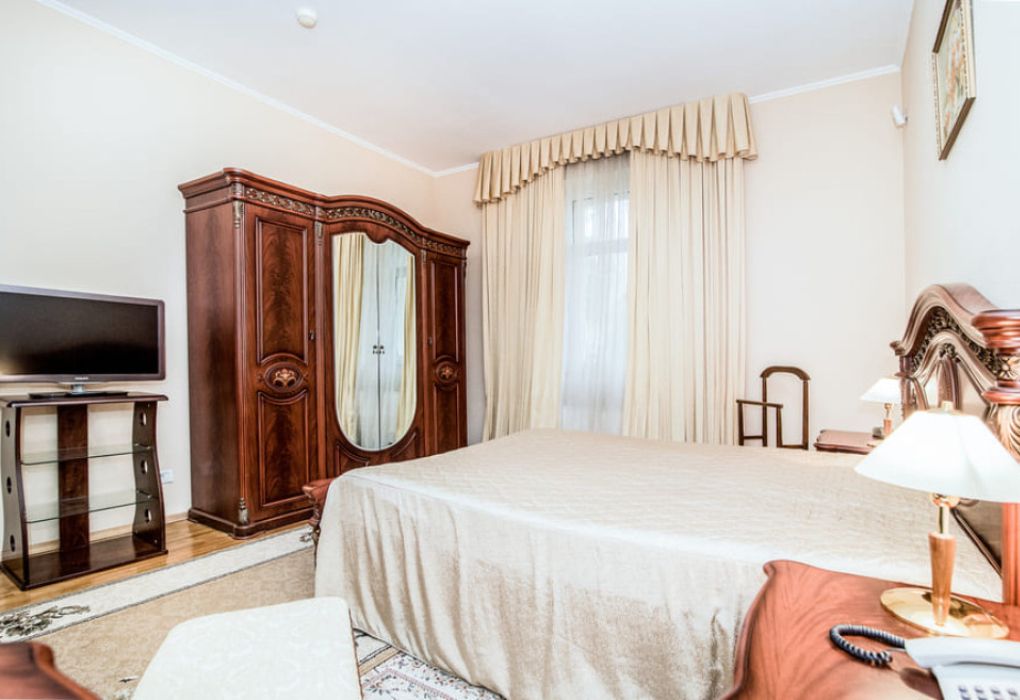 Номер состоит из спальни, гостиной и собственной ванной комнаты, оснащён удобной красивой мебелью и всем необходимом для приятного отдыха.