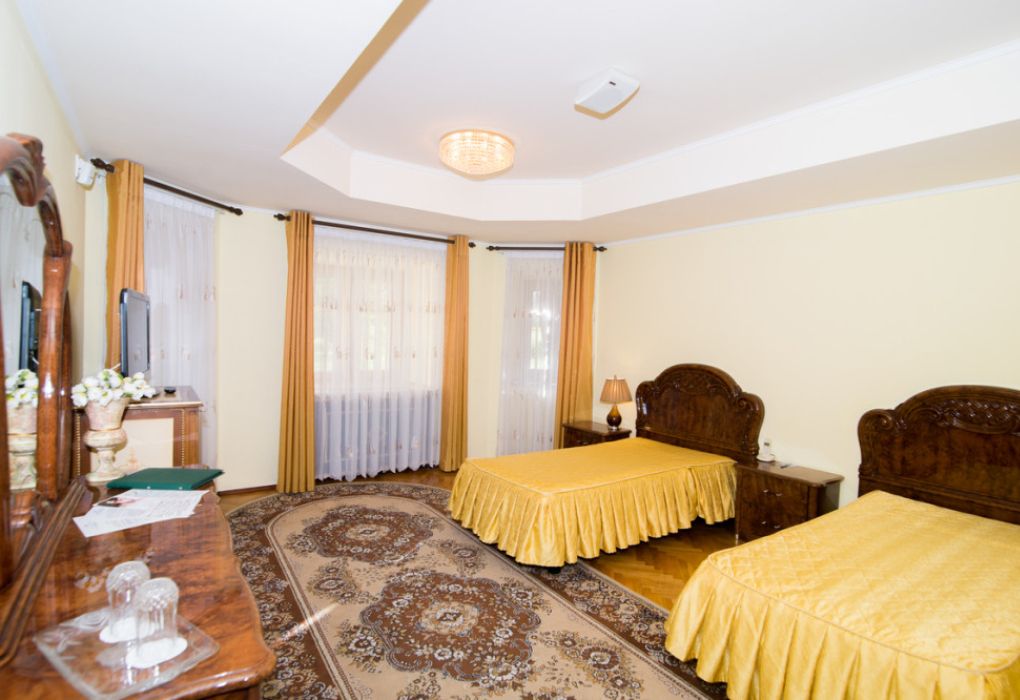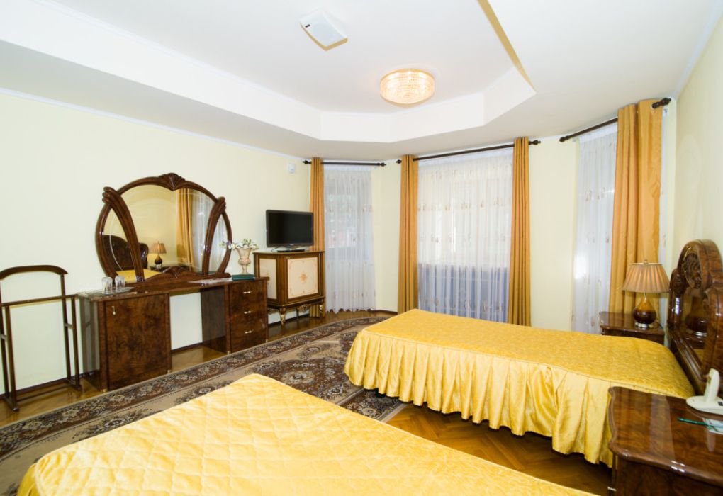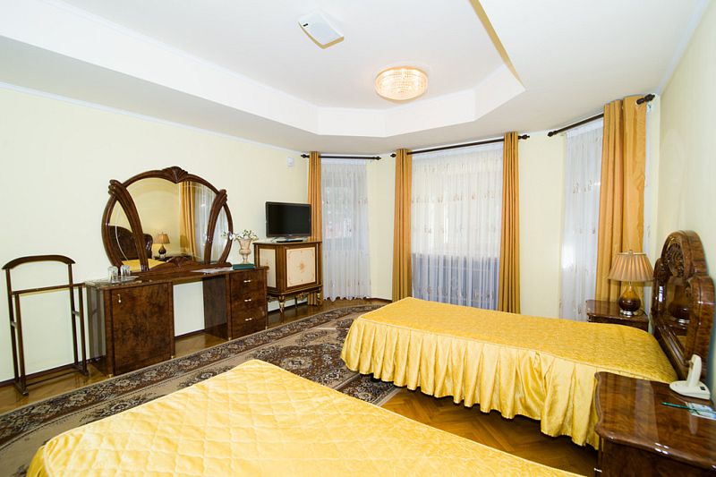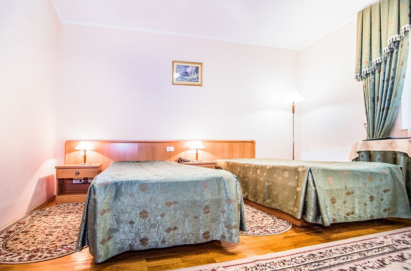 Просторный светлый номер с двуспальной или двумя полуторными кроватями предназначен для комфортного размещения 2-3 человек.