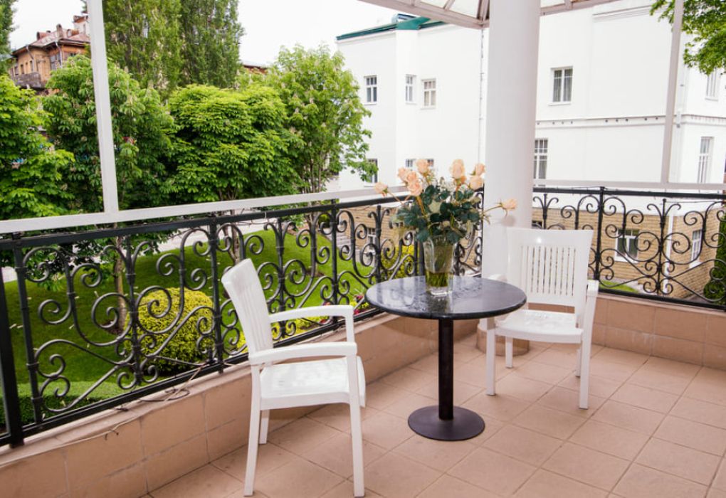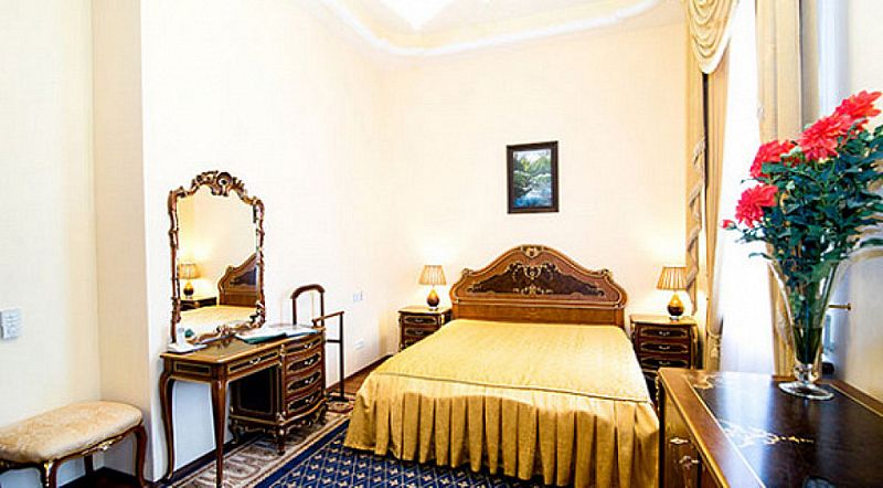 Номер состоит из спальни с балконом и собственной ванной комнаты.