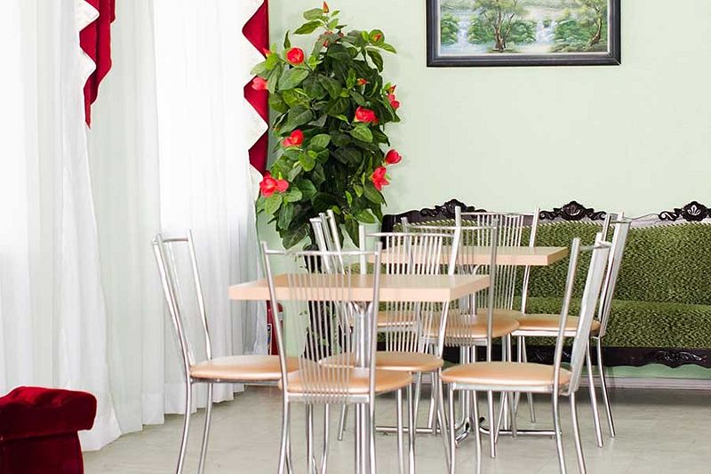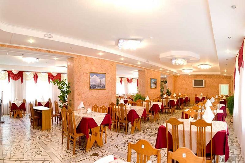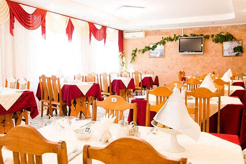 В столовой предлагаются три приема пищи в день: завтрак, обед и ужин. Каждый прием пищи состоит из нескольких блюд, которые выбираются в зависимости от диетических потребностей гостей.
