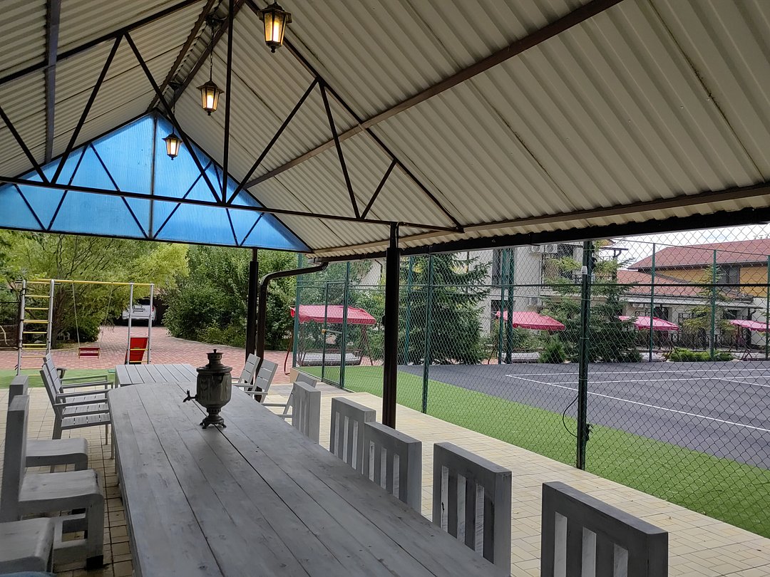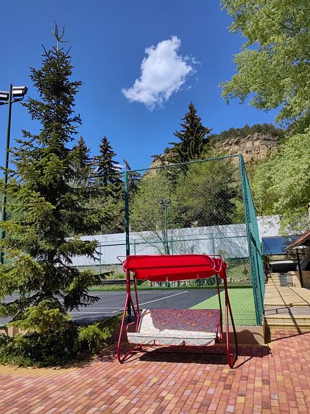 Супер местность - в лесу, не шумно, под горой. Свежий воздух. Сауна, бассейн, теннис, тренажеры, мангальная. Рядом конечная остановка, откуда можно ехать на пять направлений города, так же в соседние города, рядом автостанция. Повара отличные, старательные. Готовят очень вкусно и разнообразно. Порции блюд большие. Большое СПАСИБО всем, кто заботился о нас.