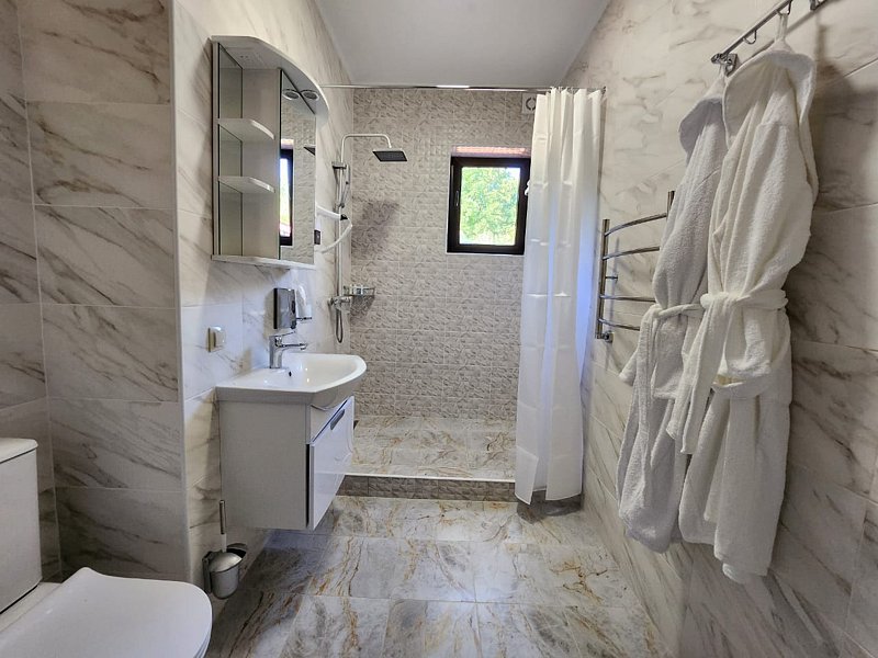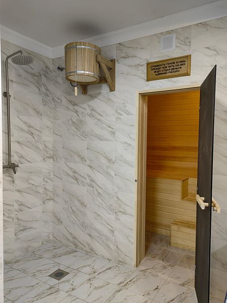 На территории гостевого дома, рядом с бассейном, оборудована специальная зона для оздоровительных процедур. Здесь вы сможете насладиться расслабляющими сеансами в сауне, освежиться в душевой и завершить парение традиционным обливанием из ведра.