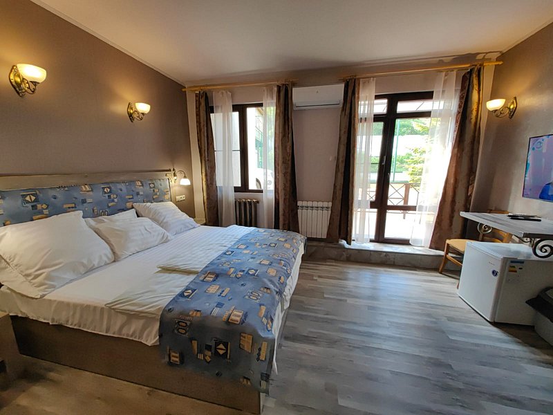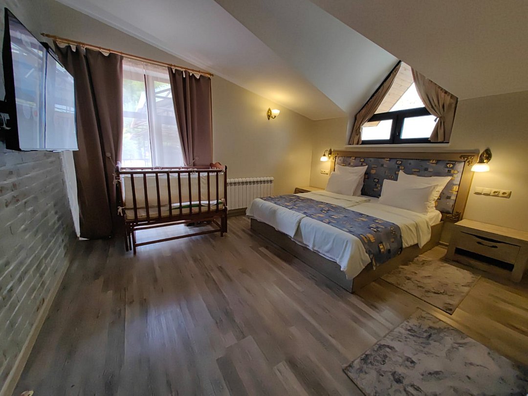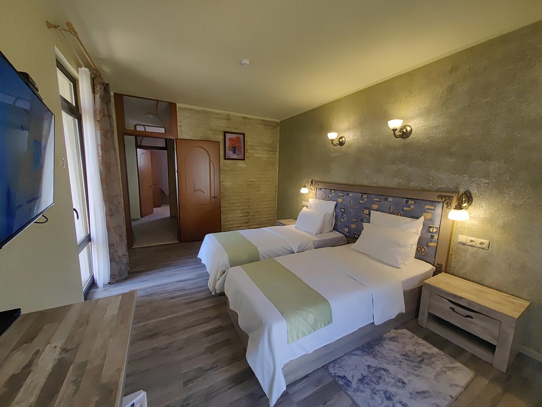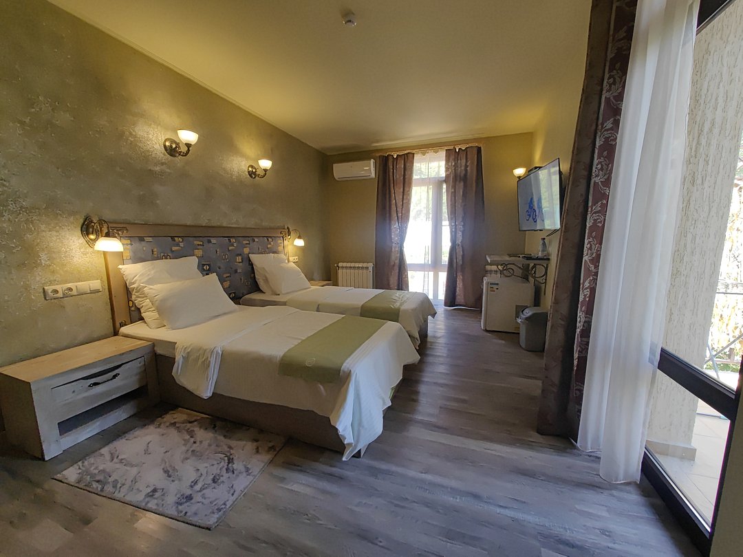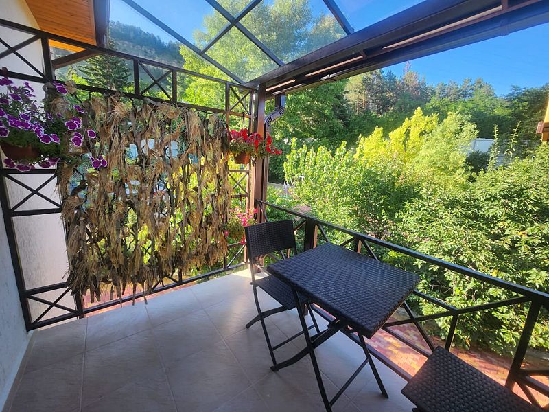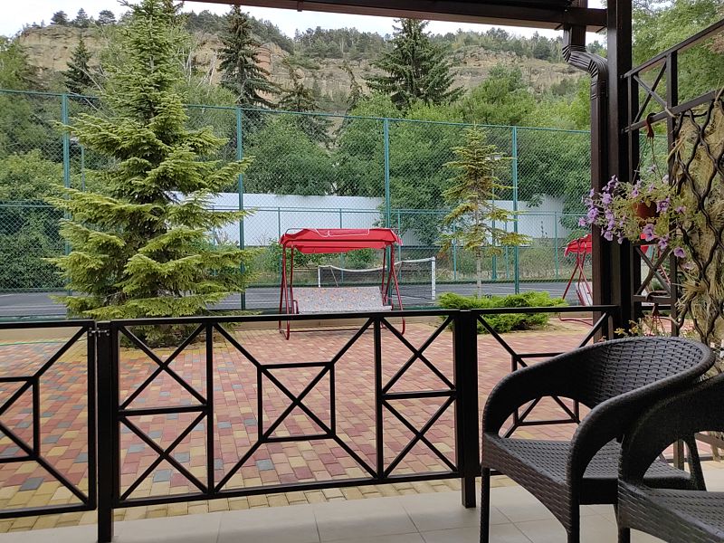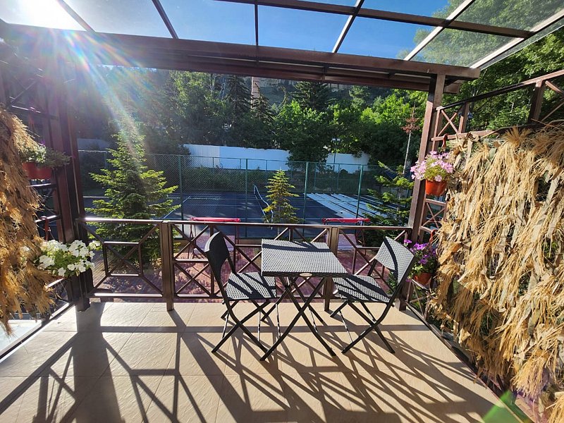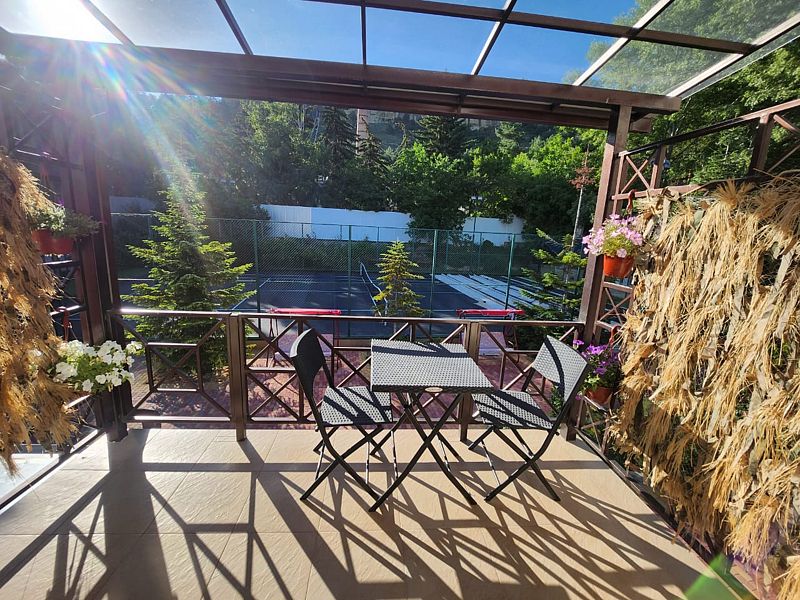 Восемь комфортабельных номеров в стиле лофт, оборудованных всеми современными удобствами, создают уютную и расслабляющую обстановку. Каждый номер имеет просторную веранду с захватывающим видом на горные пейзажи. Помимо благоустроенных жилых помещений, на территории гостевого дома есть множество развлечений и возможностей для активного отдыха — от крытого бассейна и сауны до теннисного корта и бильярдной.