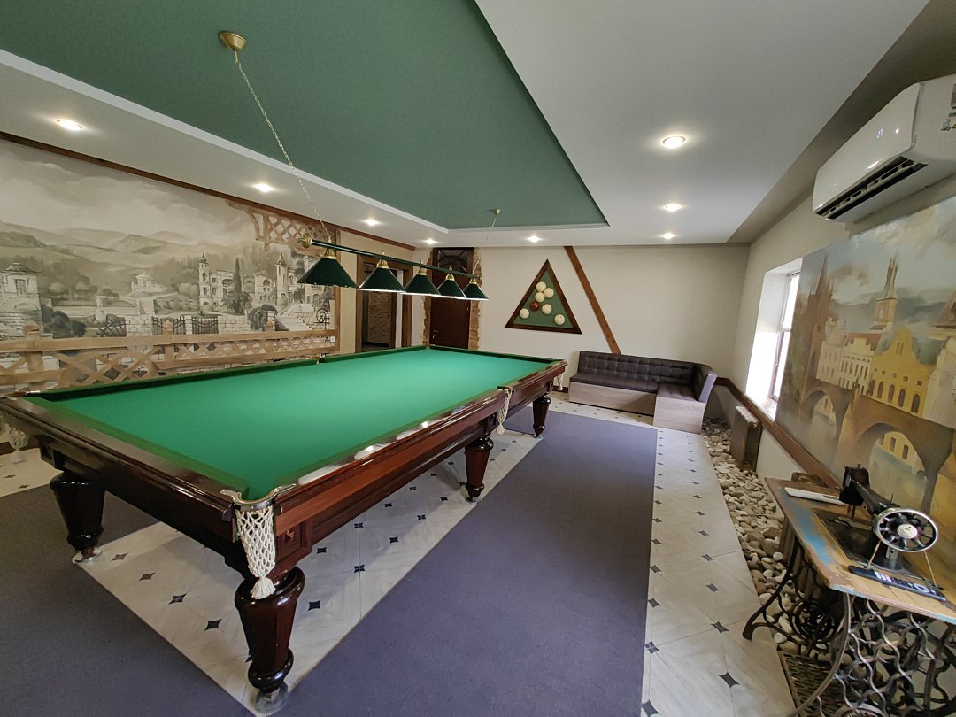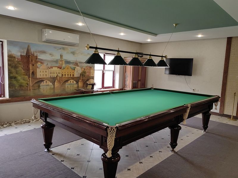 Одним из центральных элементов развлекательной инфраструктуры является уютная бильярдная, расположенная внутри основного корпуса. Здесь любители интеллектуальных игр смогут насладиться захватывающими партиями, погрузившись в интригующую динамику бильярдных баталий. Чтобы отдохнуть от игровых сражений, оборудована комфортная зона релаксации с установленным телевизором.