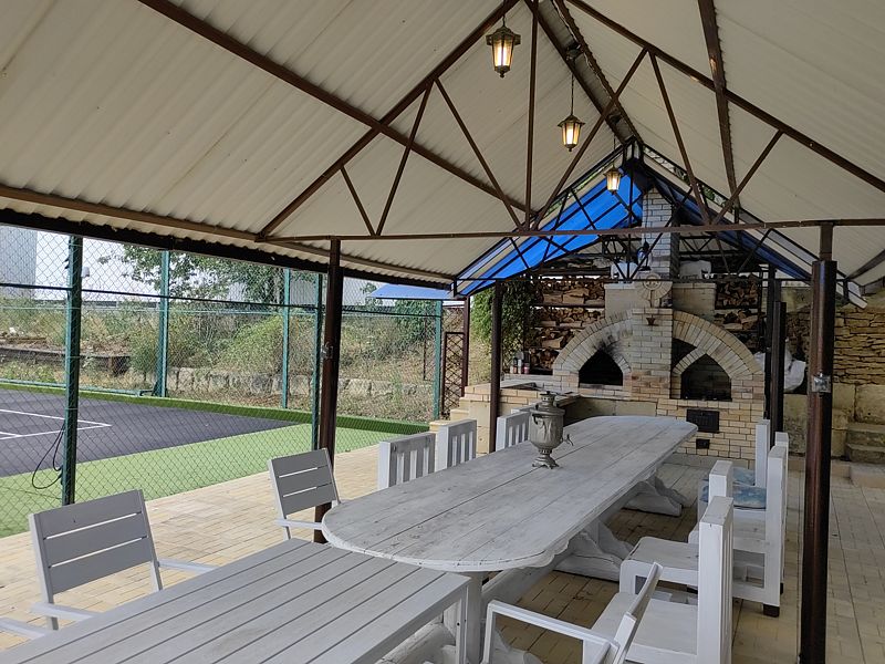 В беседке, расположенной на территории комплекса, можно расположиться за одним из столиков, насладиться ароматом традиционного самовара и даже организовать шашлычное застолье, воспользовавшись печью-барбекю. Это идеальное место для семейных пикников или романтических вечеров под звездным небом. Продуманная организация пространства с учетом всех необходимых элементов создает атмосферу уюта, позволяя гостям в полной мере насладиться моментами наслаждения и умиротворения.