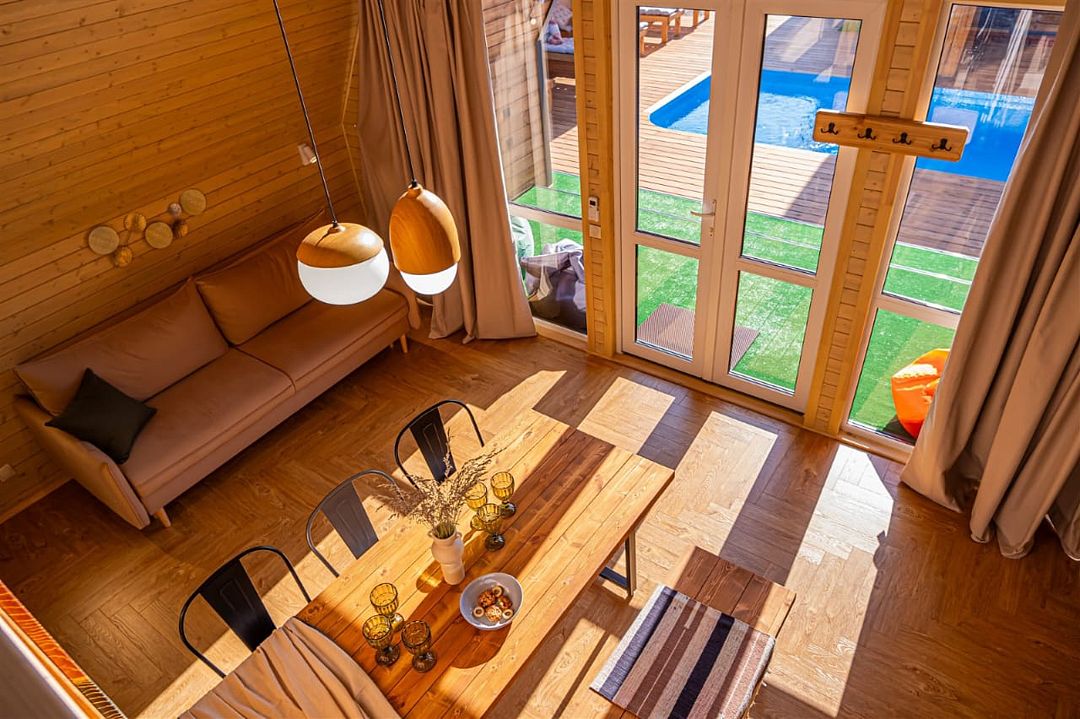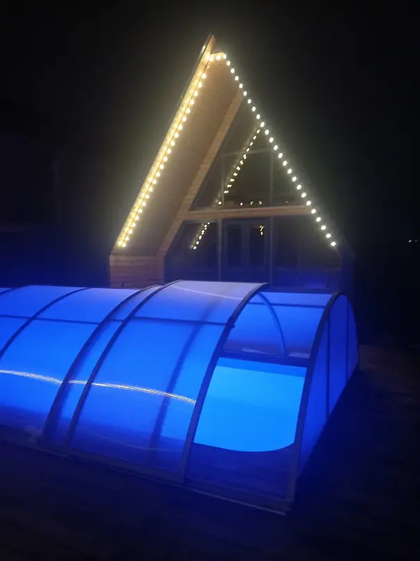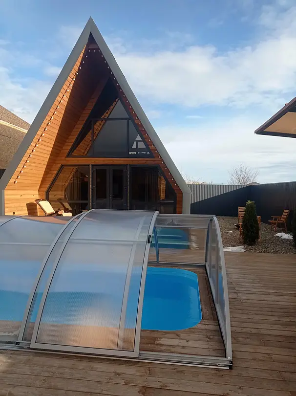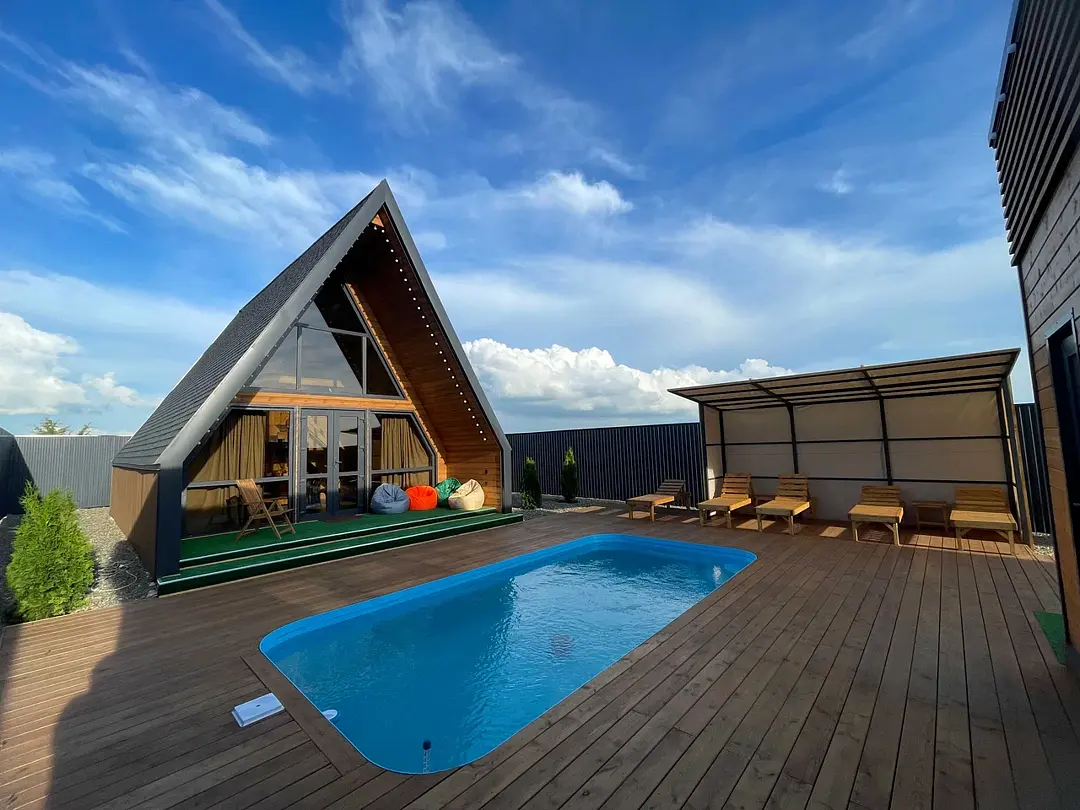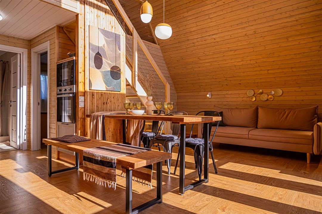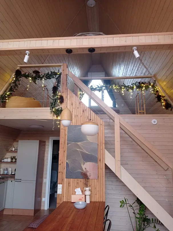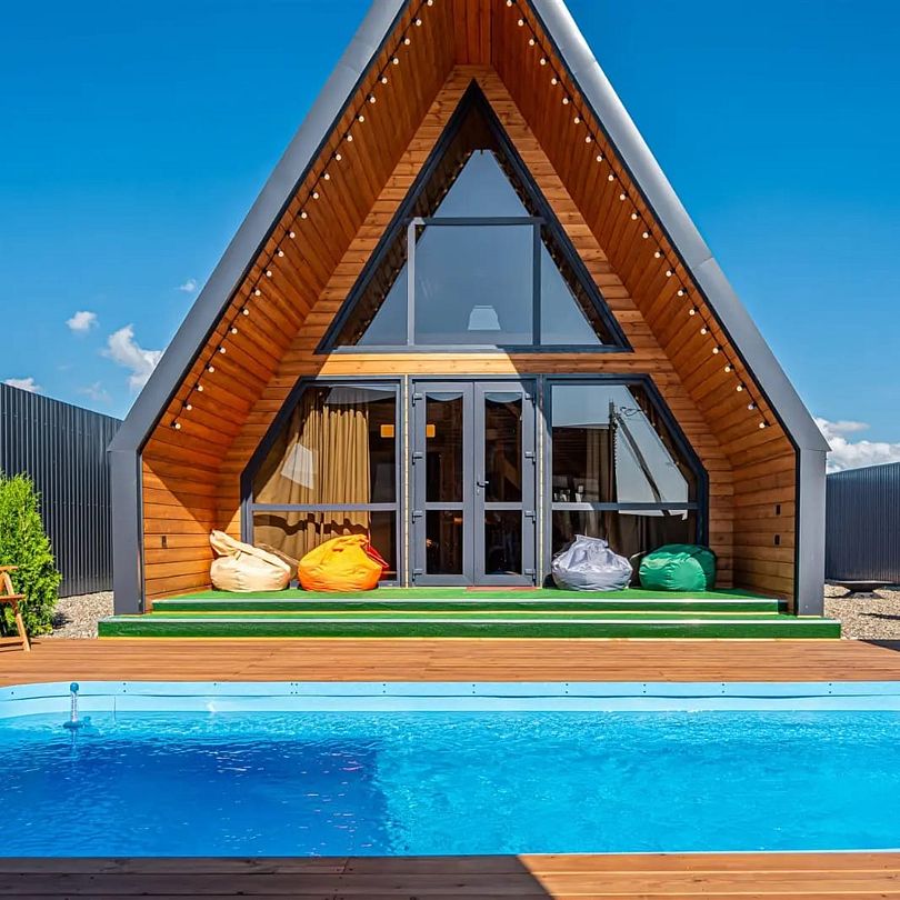 Вас ждёт уютный домик типа А-фрейм вместимостью до 6 человек, в котором есть всё необходимое для того, чтобы проживание было комфортным.