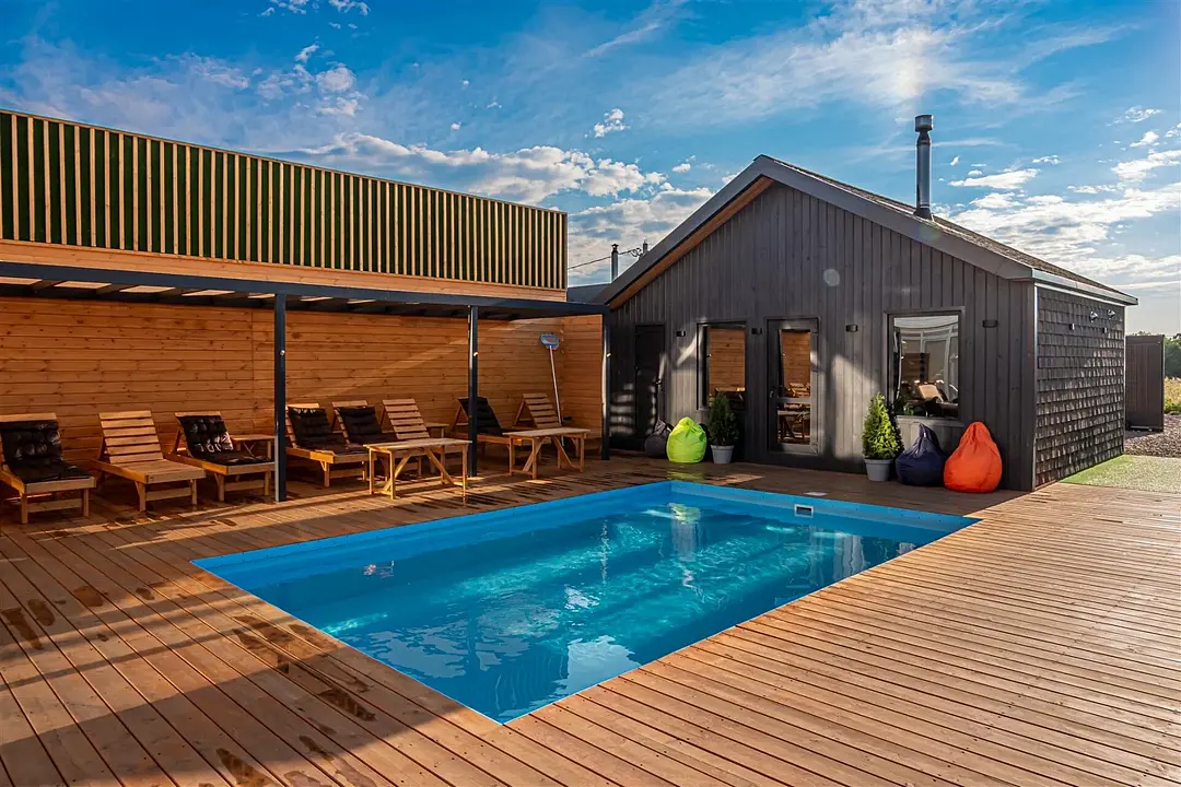 Тип бассейна: открытый бассейнРядом с бассейном: шезлонгиРазмеры: 6 x 4 мНа территории есть тёплый бассейн.