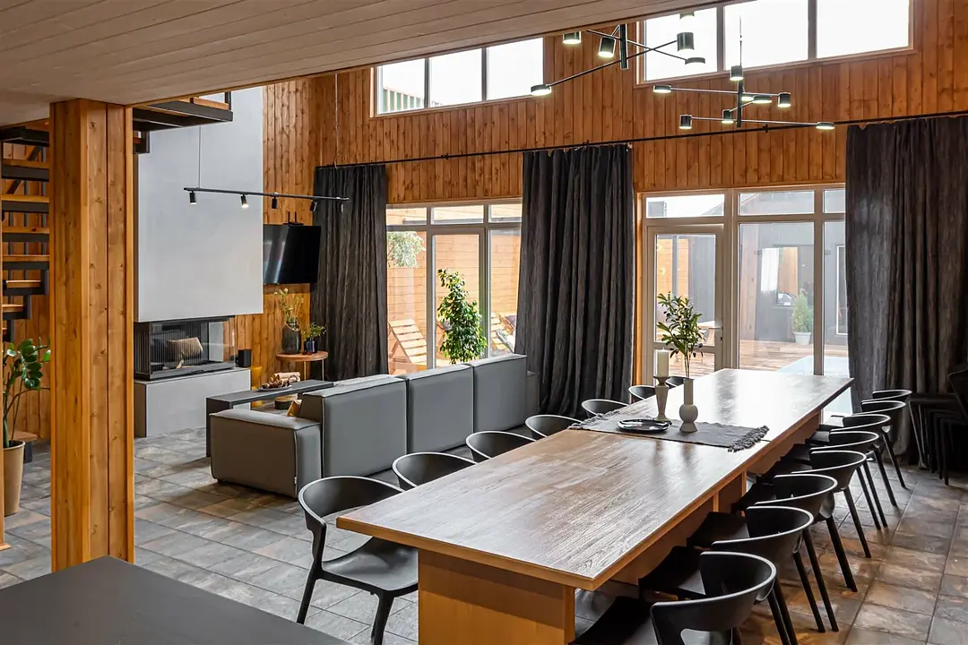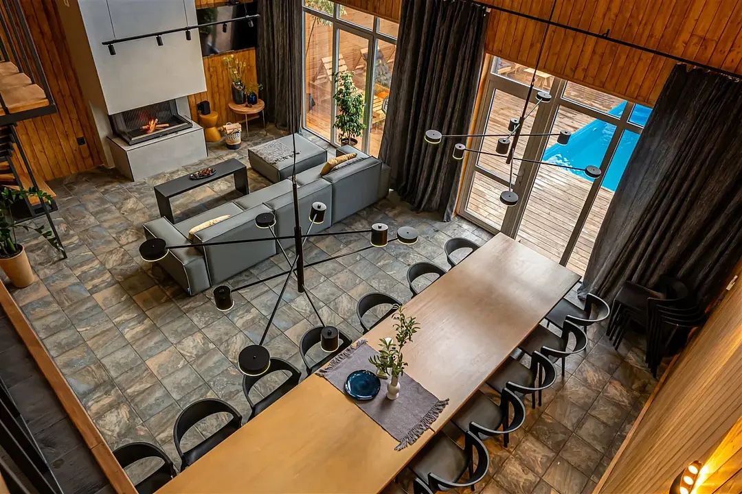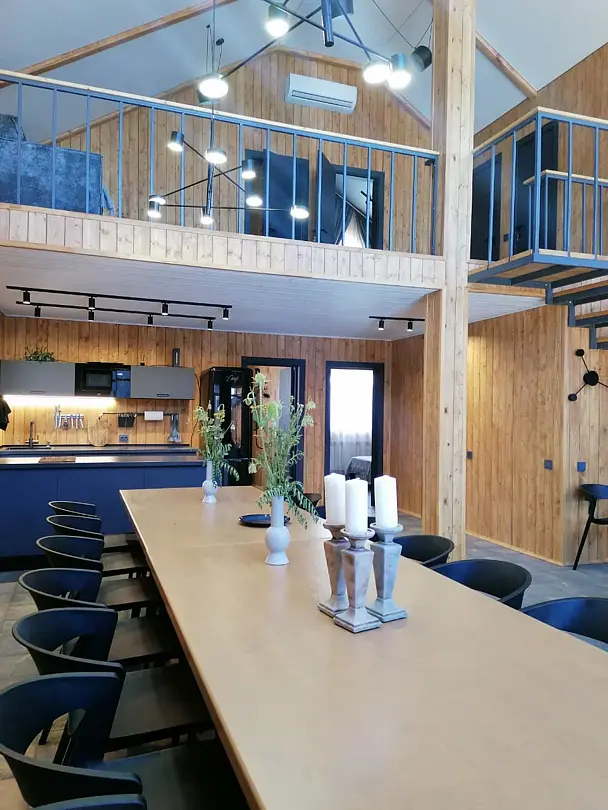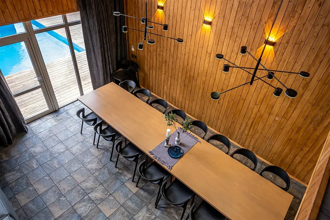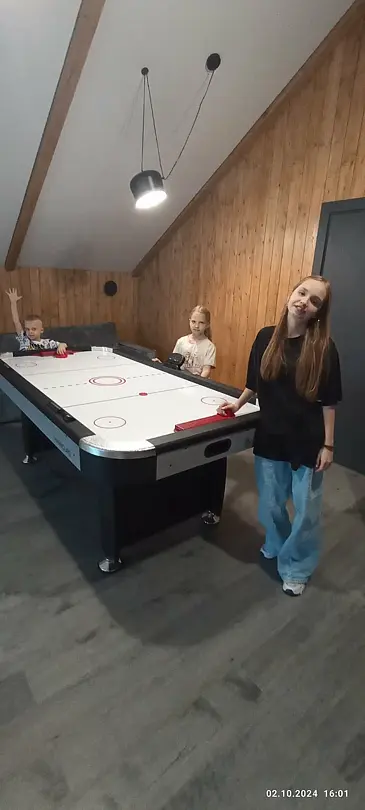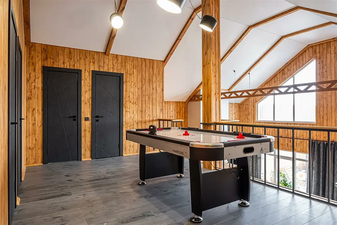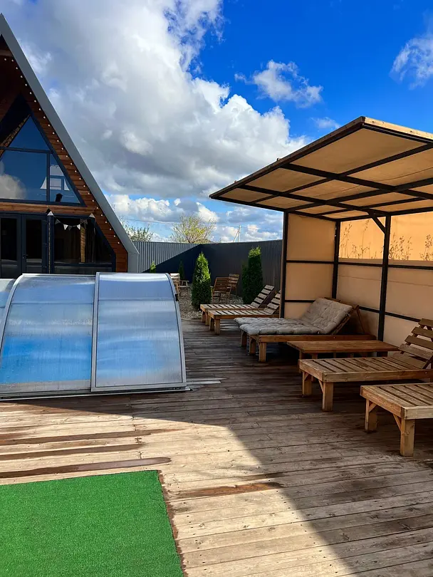 Вас ждёт ухоженная территория с просторным коттеджем вместимостью до 13 человек, открытый бассейн с тёплой водой, настоящая русская баня, аэрохоккей, настольные игры и зона отдыха с костровой чашей, где можно провести уютный вечер у огня. Для отдыха в большой компании предусмотрены столы на 20 и 25 человек.