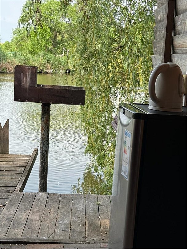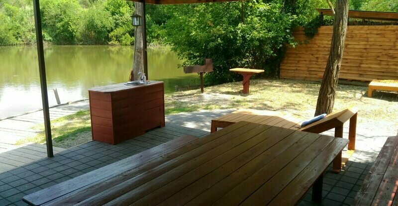 Уединенная комфортабельная беседка с отдельным подъездом оснащена всем необходимым для отдыха и рыбалки + трехместный домик на берегу.