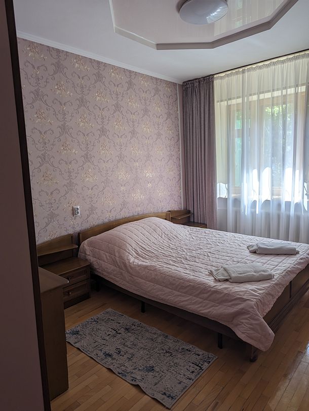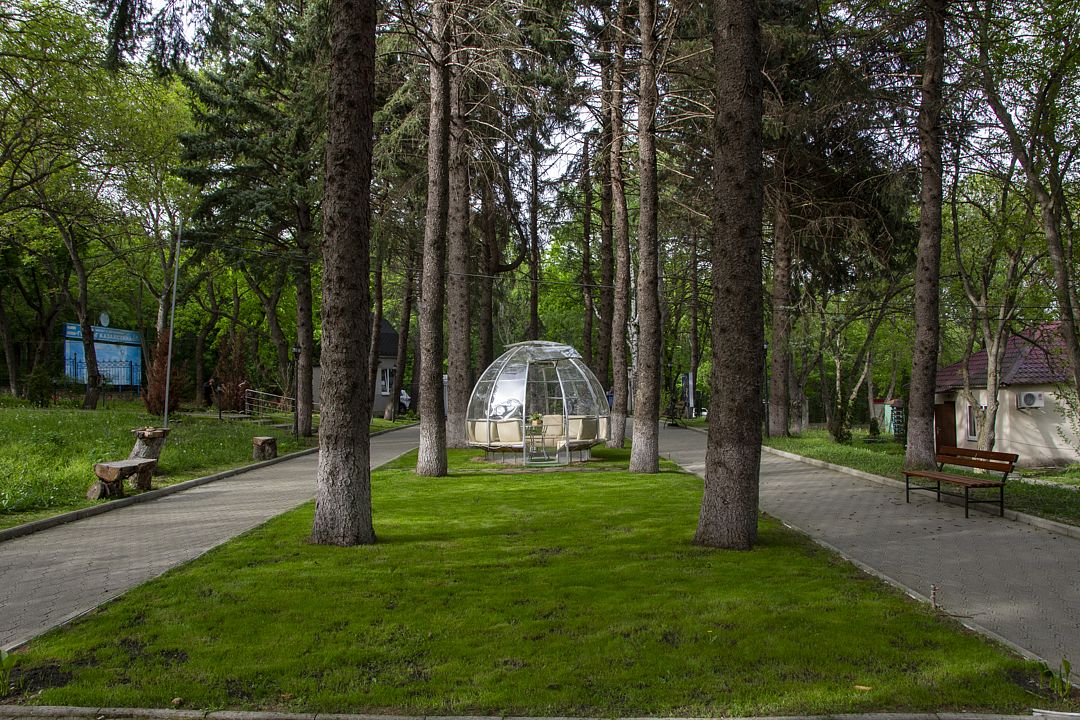 Отдых был ПОТРЯСАЮЩИМ И НЕЗАБЫВАЕМЫМ!!! Мы ехали на собственной машине, и забота о нас началась ещё в дороге. Администратор позвонила и расспросила: где мы находимся, успеем ли на ужин, оставить ли нам его, как едет наша собачка (!)? Заселились в 2-х комнатный номер «Люкс» № 1 корпуса № 8. Понимая, что мы в лечебно-профилактическом учреждении, а не в фешенебельном отеле, нас всё устроило. К слову, уборка номера производилась каждый день, смена белья – раз в неделю, смена полотенец – по требованию. Пансионат находится на окраине п.Иноземцево у подножия горы Бештау, окружен лесом, тишина, птицы поют, по деревьям белочки скачут, на территории чистота, много аллей, всевозможных насаждений, беседок (одна из них отапливаемая), есть бесплатная охраняемая парковка, детская площадка и множество других локаций для активностей. Представляю, как здесь красиво и здорово в теплый период года!