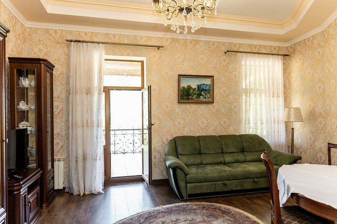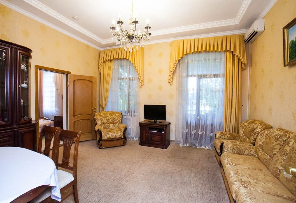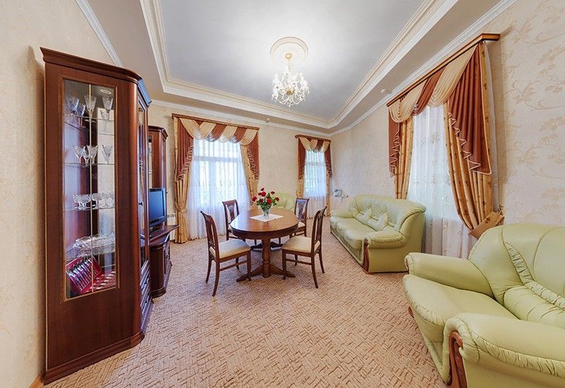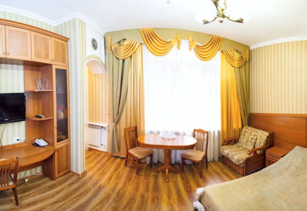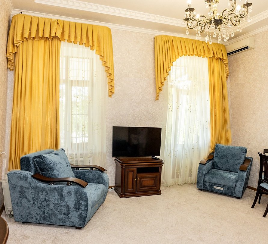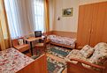 Номер улучшенной планировки с зоной для отдыха, оборудован кондиционером, холодильником, чайником, комплектом посуды, ж/к телевизором, феном, телефонный аппарат внутренней связи в номере (ванна, санузел совмещен).