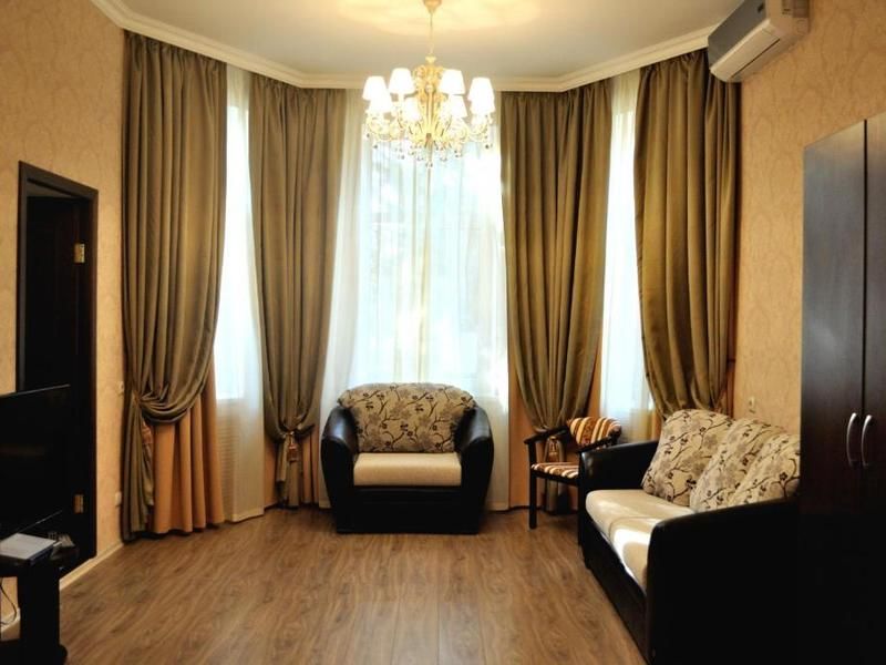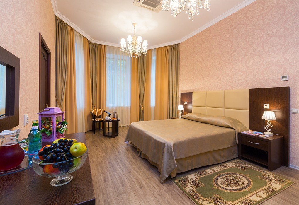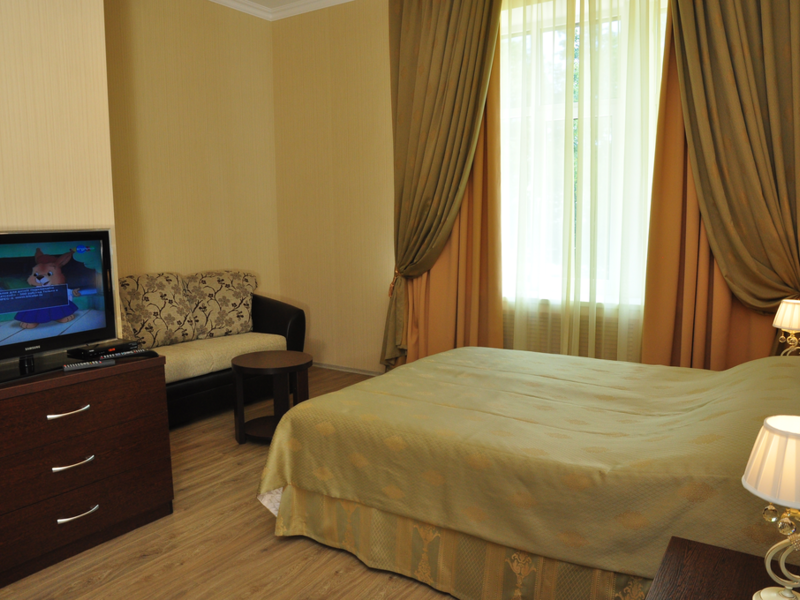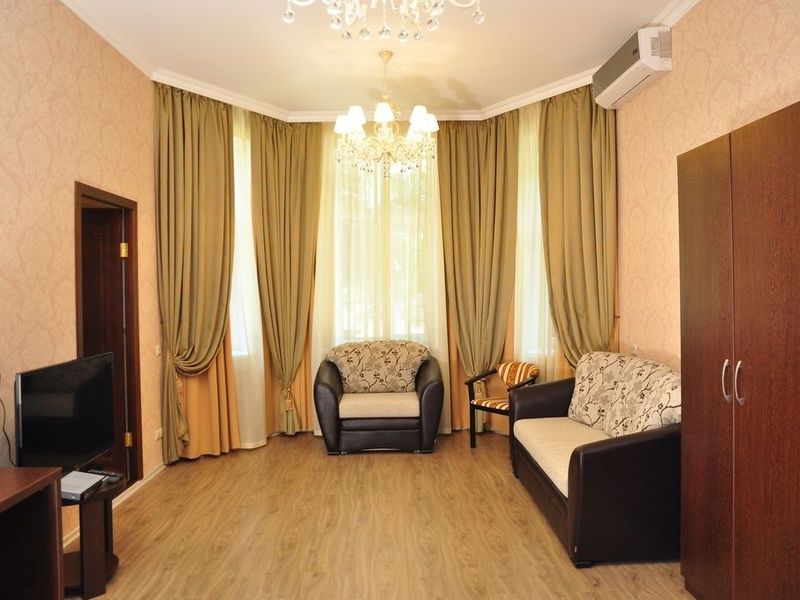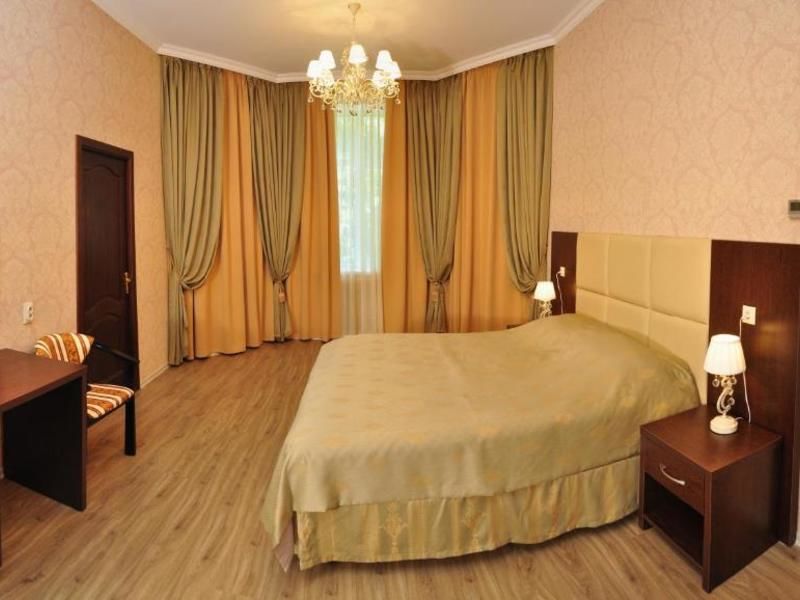 ДостоинстваПрекрасное люксовое место в Ессентуках. Камерный особняк с охраняемой территорией и уютными двухкомнатными номерами. В номере большая ванная комната и спутниковое телевидение. Есть сауна с бассейном. По-настоящему комфортный отдых. Обязательно приеду еще!