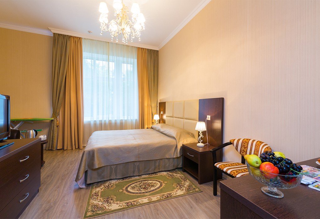 ДостоинстваОтдыхал по совету товарища, который часто сюда приезжает. Хорошее лечение, компетентный персонал, замечательное питание. В номере люкс фрукты постоянно и есть минибар. Рядом прекрасный парк, водо- и грязелечебница. Очень рекомендую!