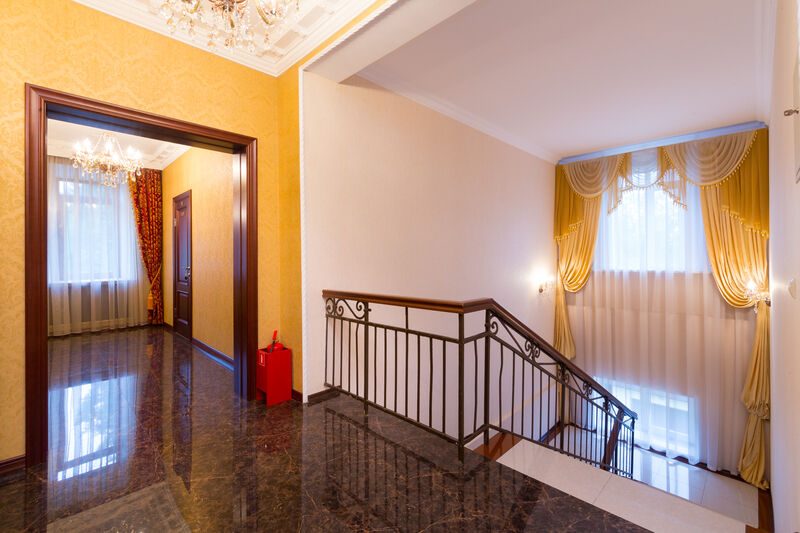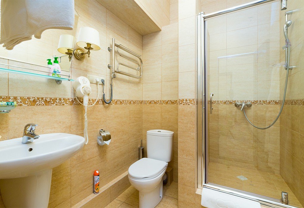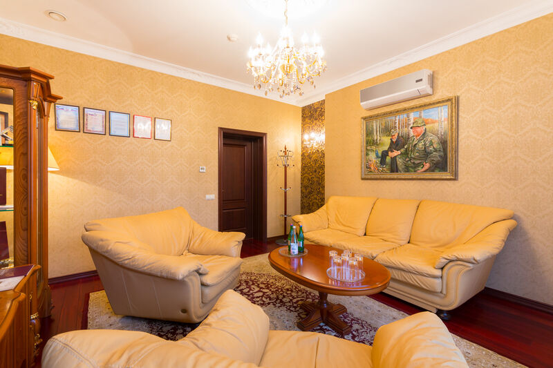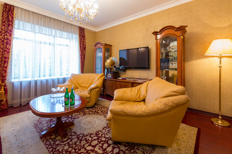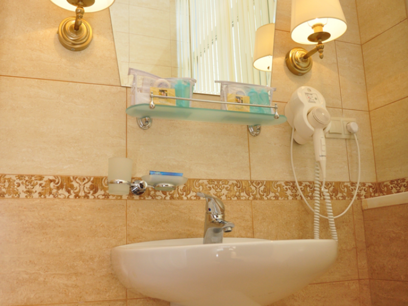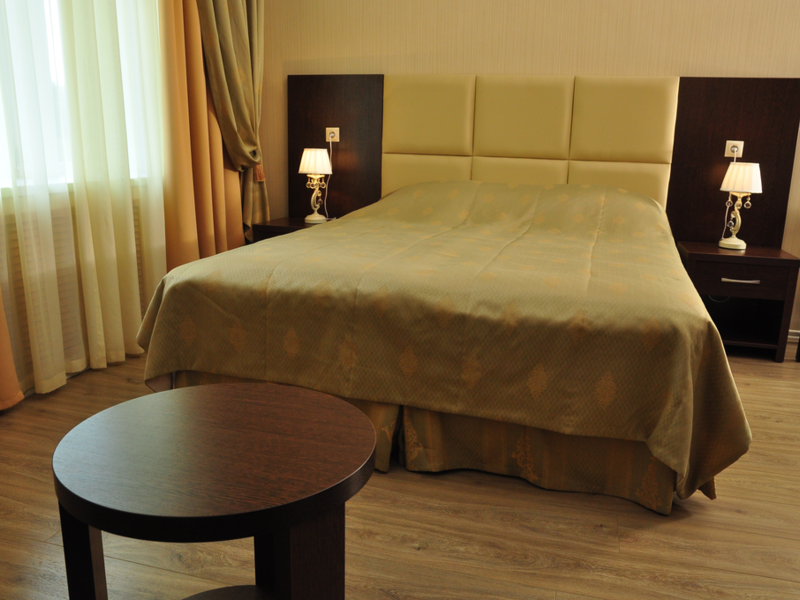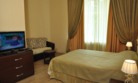 В номерах классический интерьер, выдержанный в теплой пастельной гамме, санузел., кондиционер, телевизор.