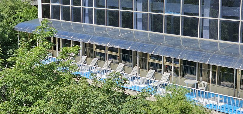 Отдыхающие санатория с удовольствием посещают большой плавательный бассейн, где проводятся гимнастика в воде и занятия по аквааэробике. В вечернее время бассейн открыт для свободного плавания. Там же вы сможете принять участие в спортивных играх на воде.