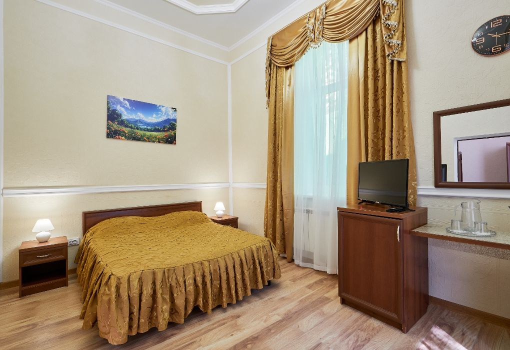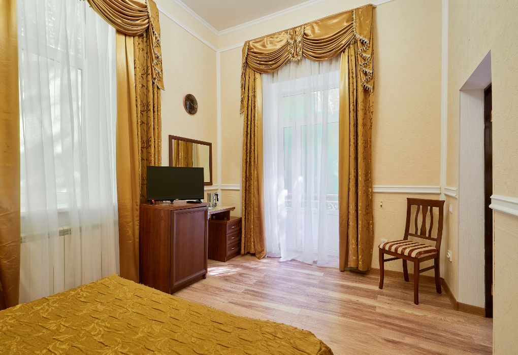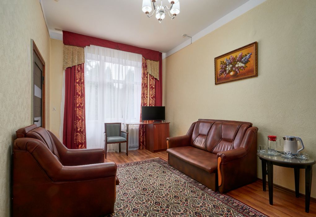 Одним из достоинств санатория является небольшая коечная емкость — 145 мест, что располагает к спокойному уединенному отдыху. Во всех номерах есть телевизоры и холодильники. Из окон открывается прекрасный вид на курортный парк. При санатории бесплатная охраняемая автостоянка. Питание — 4-разовое диетическое по системе «меню-заказ». По каждому лечебному профилю разработана диетическая терапия. Для проведения часов досуга к Вашим услугам культурно-развлекательная и экскурсионная программы.