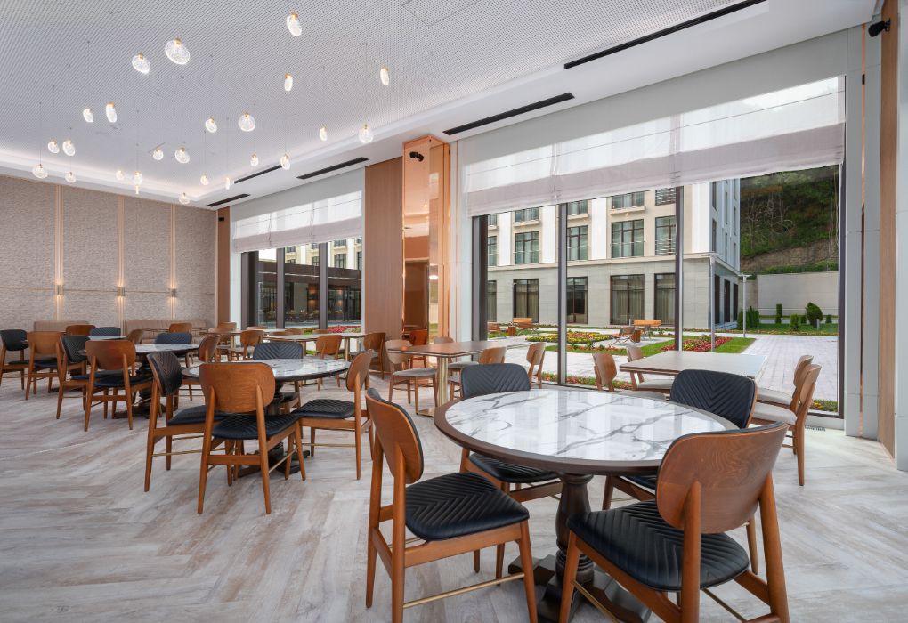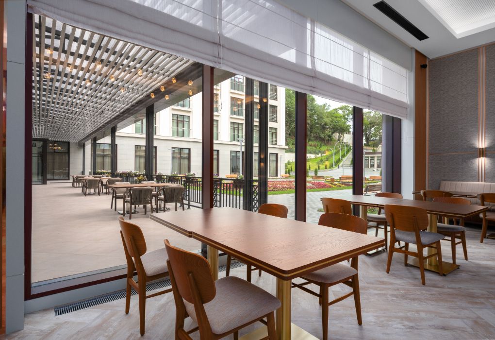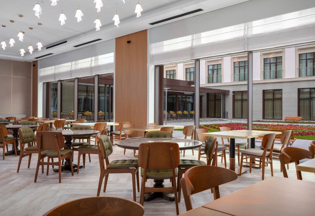 Лобби-бар расположен на первом этаже санатория и является прекрасным выбором для желающих отдохнуть в уютной обстановке. Шикарный вид на территорию санатория и чистейший воздух Национального Кисловодского парка обеспечат Вам расслабление и хорошее настроение. В меню лобби-бара представлены напитки, десерты и легкие закуски.