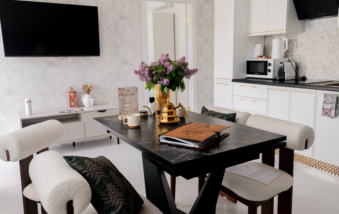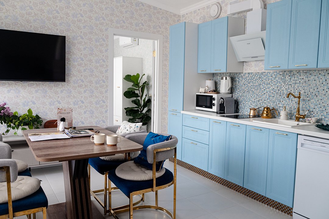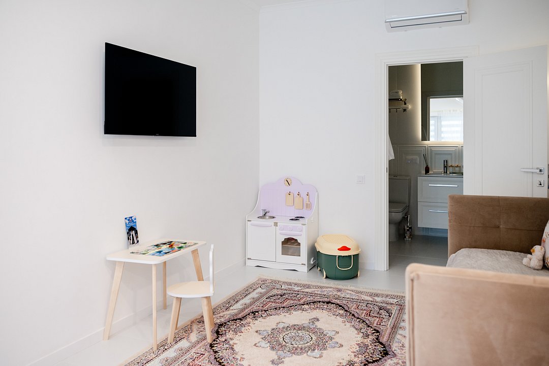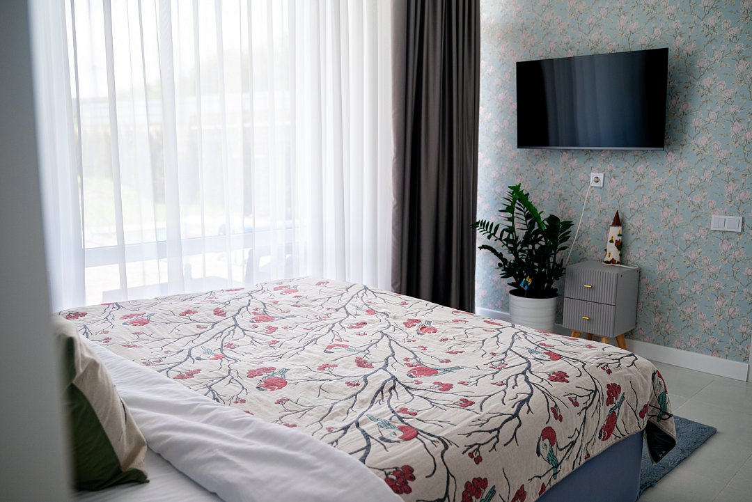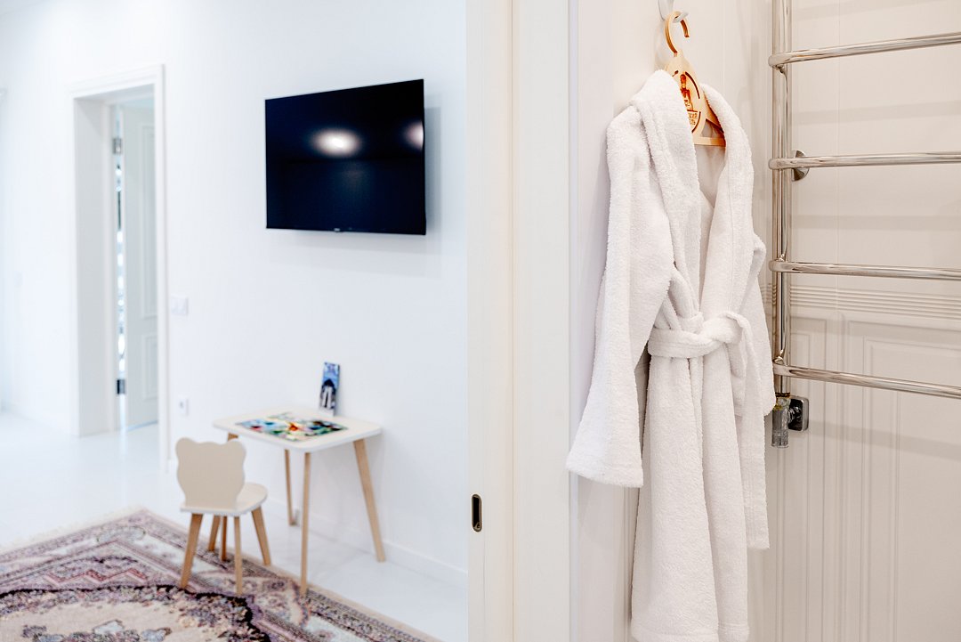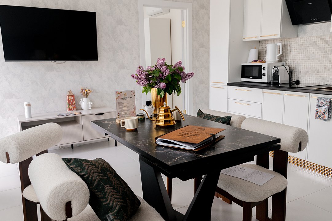 В номере предусмотрено все необходимое для Вашего удобства: кровать/диван с мягким постельным бельем, современный большой телевизор с приложением Кинопоиск, кондиционер для поддержания оптимальной температуры, сейф, кухонное оборудование.