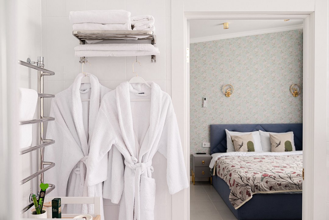 Для проживания гостей парк-отель предоставляет 6 роскошных вилл премиум-класса, каждая из которых оснащена собственными горячими бассейнами и купелями. Апартаменты и виллы оборудованы всем необходимым для комфортного проживания: включают кухню, просторную гостиную с обеденной зоной, изолированные спальни, большие, светлые душевые в каждой спальне с премиальной сантехникой и набором косметики, современный большой Смарт ТВ с оплаченной подпиской «Кинопоиск». Комнаты полностью меблированы и готовы к заселению.